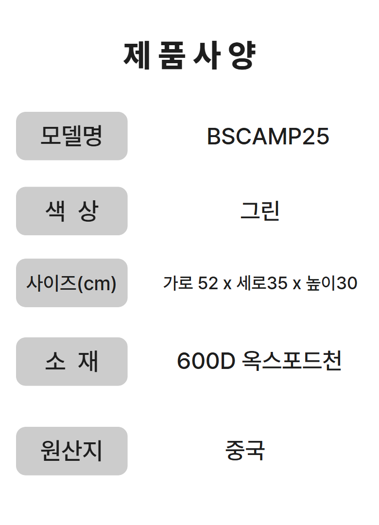 | 재질 | 600D옥스포드원단, 바닥면:PVC | 제품 구성 | 가방본품 |