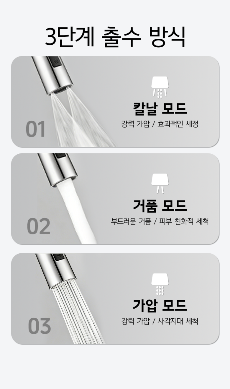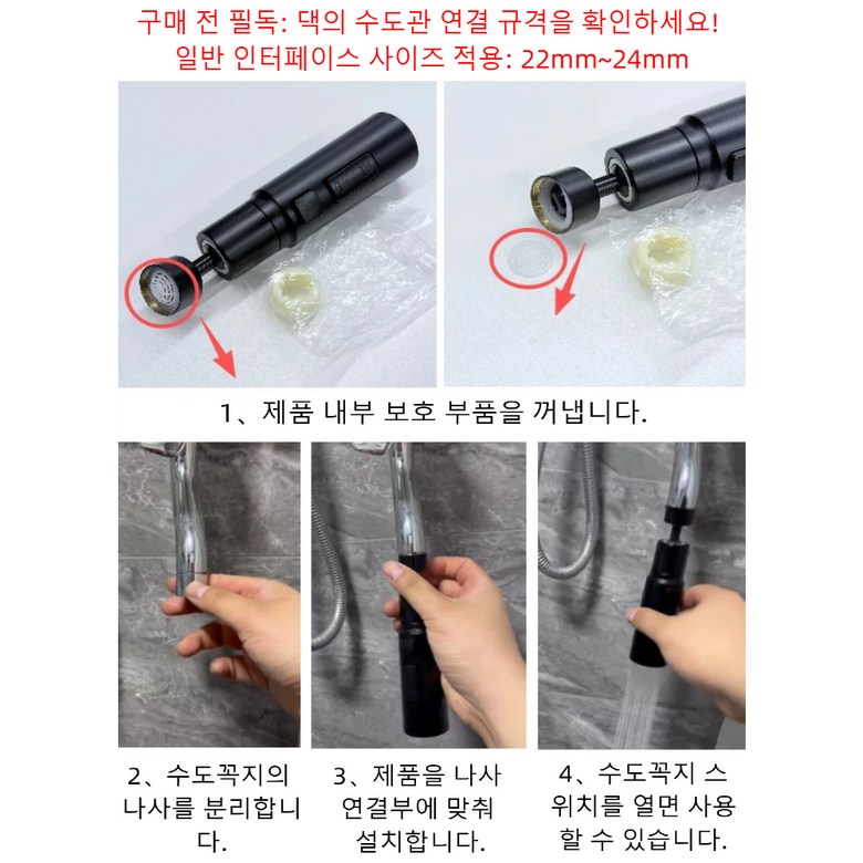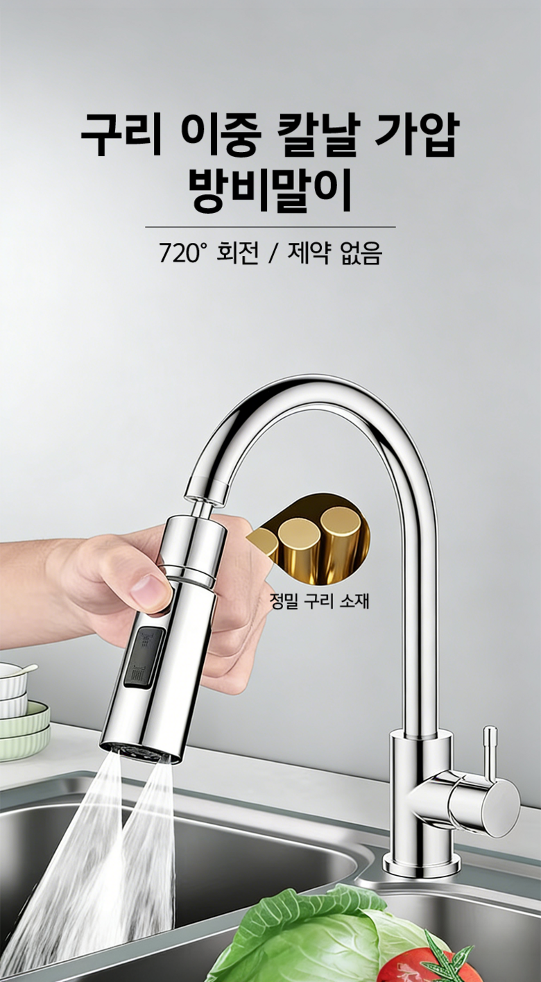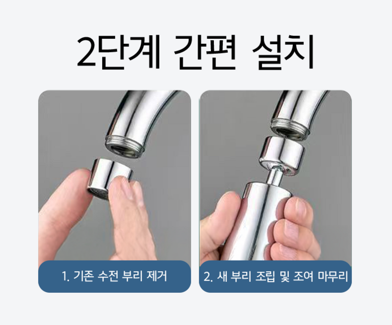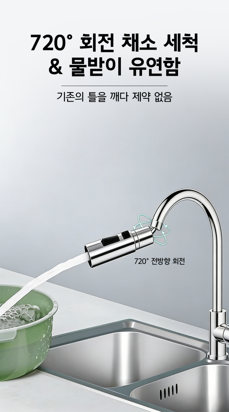 주방 수전 헤드 360도 회전 헤드 싱크대 수전 헤드 연장, 실버, 1개