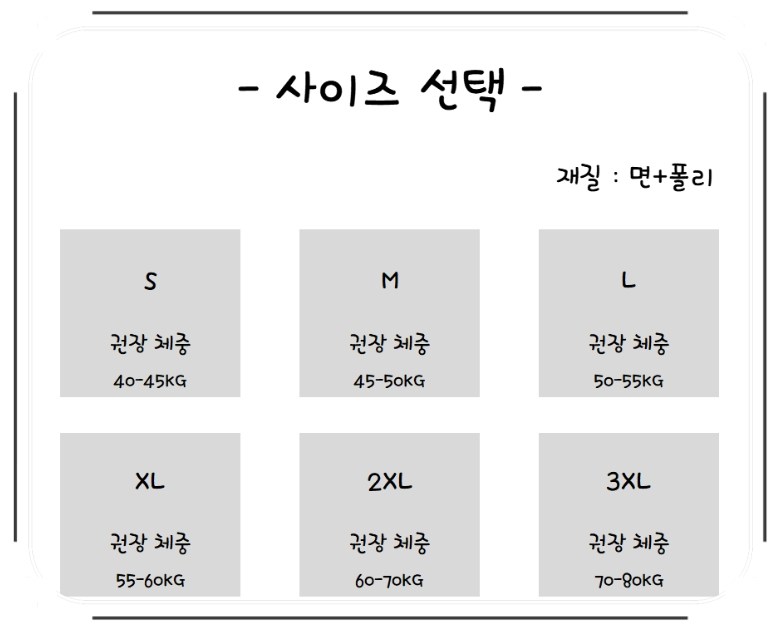 | 제품 소재 | 재질:면+폴리 | 색상 | 상품 상세페이지 참조 |