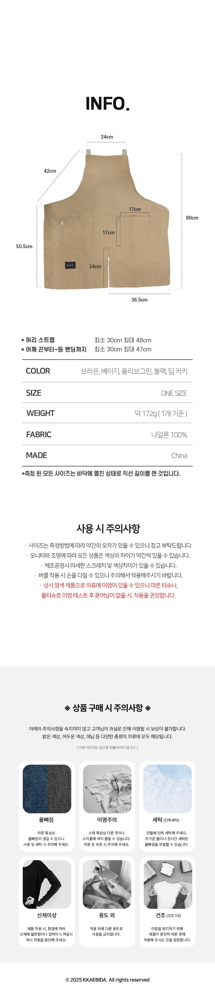 - 앞치마소재: 나일론/폴리에스터