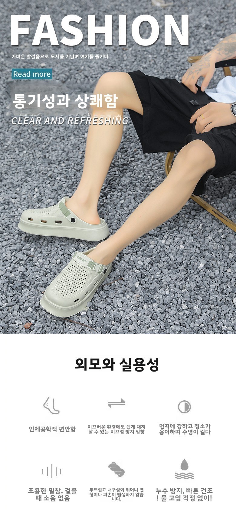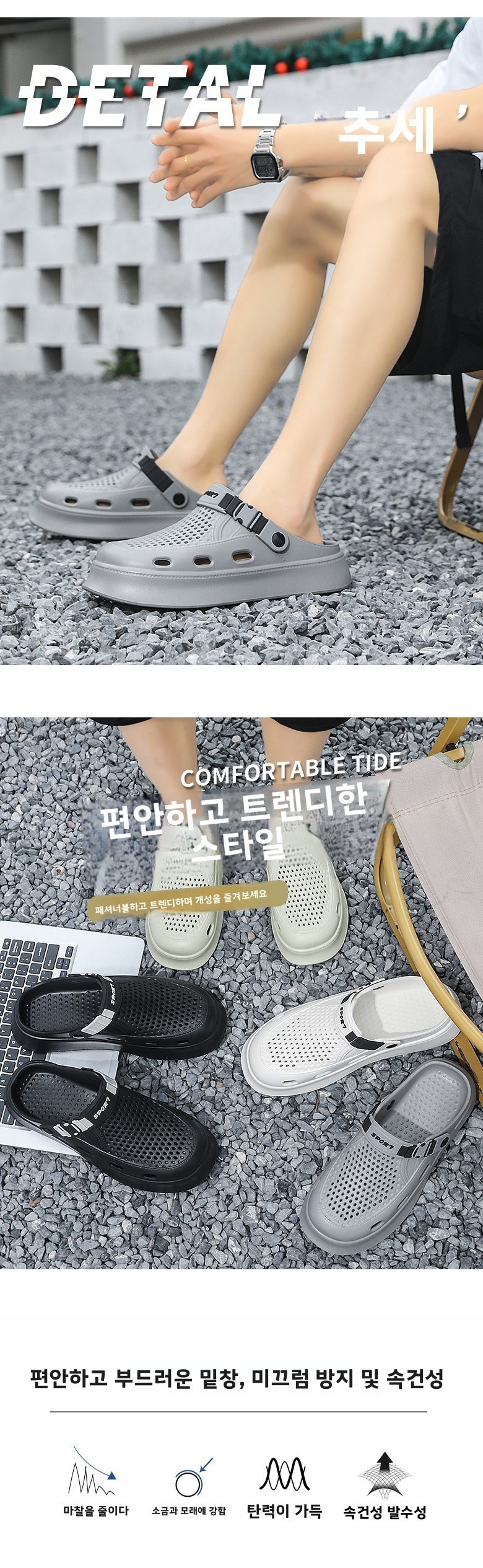 신치파 남성 플랫폼 스트랩 홀 젤리슈즈 2966-1