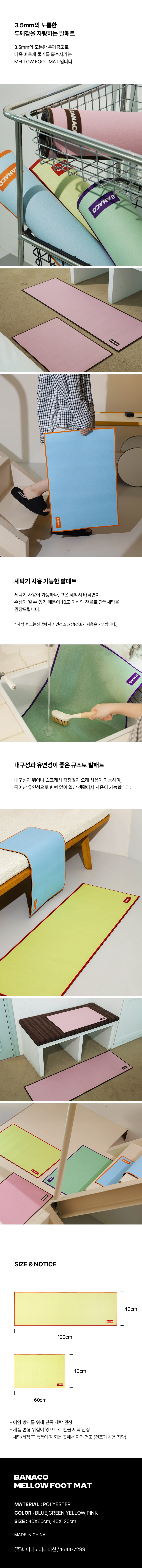 | 품명 및 모델명 | 바나코 멜로우 풋매트 빨아쓰는 규조토 발매트 | 인증/허가 사항 | 해당없음 |