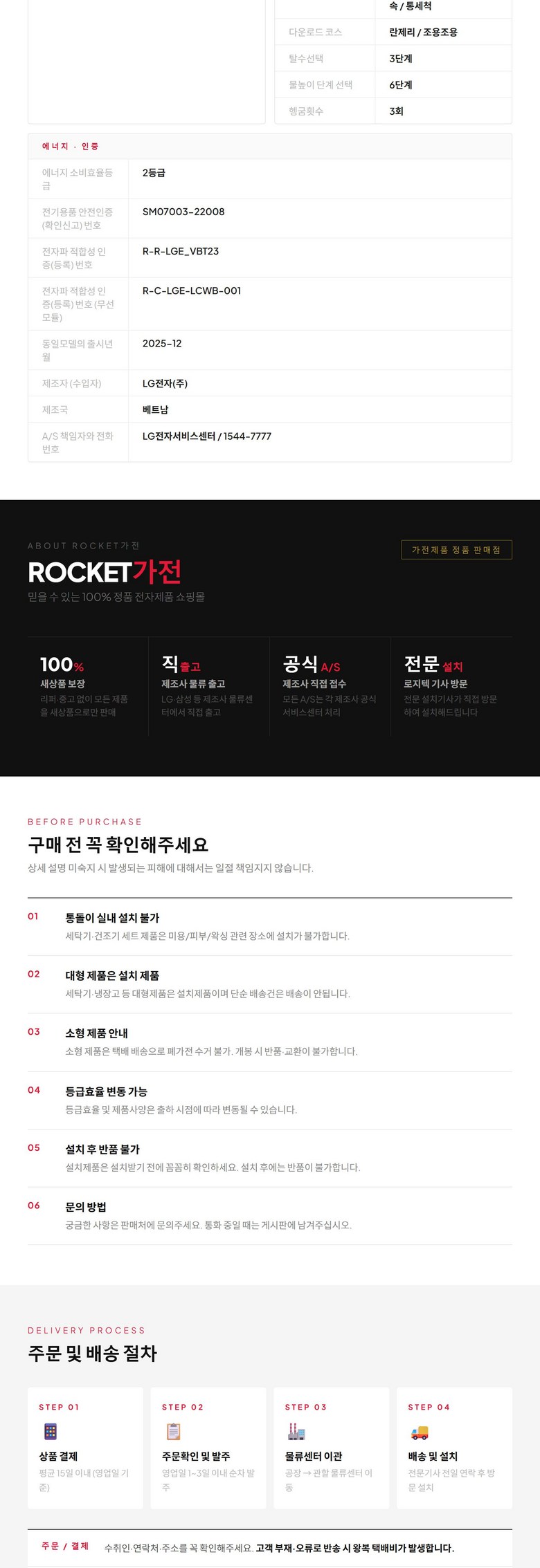| 정격전압, 소비전력 | 상품 상세페이지 참조 | 에너지소비효율등급 | 상품 상세페이지 참조 |