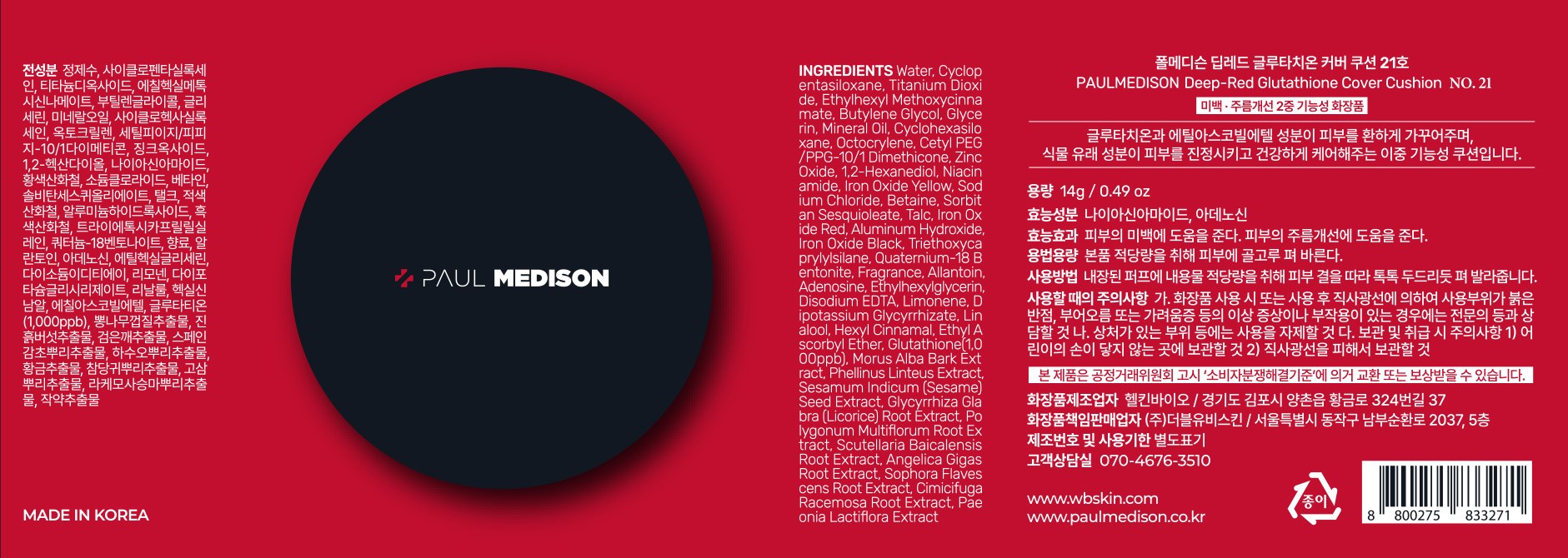 | 화장품제조업자, 화장품책임판매업자 및 맞춤형화장품판매업자 | 컨텐츠참조 | 제조국 | 한국 |