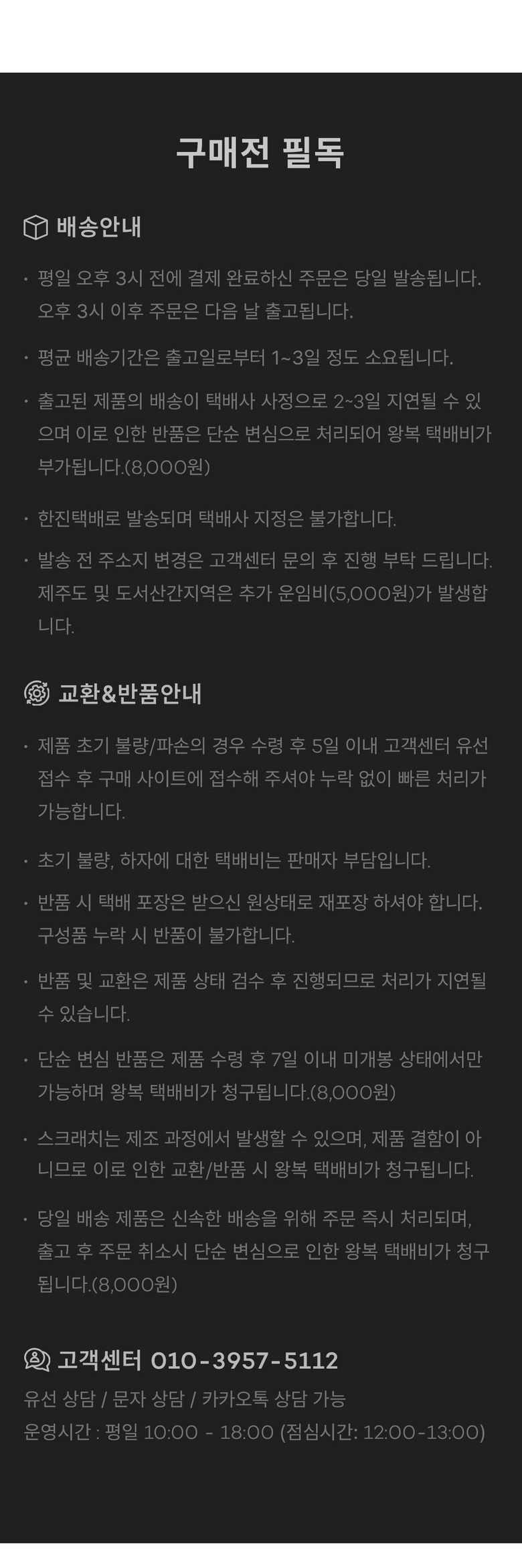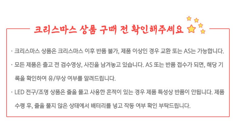 - ㆍ교환/반품에 관한 일반적인 사항은 판매자가 제시사항보다 관계법령이 우선합니다.