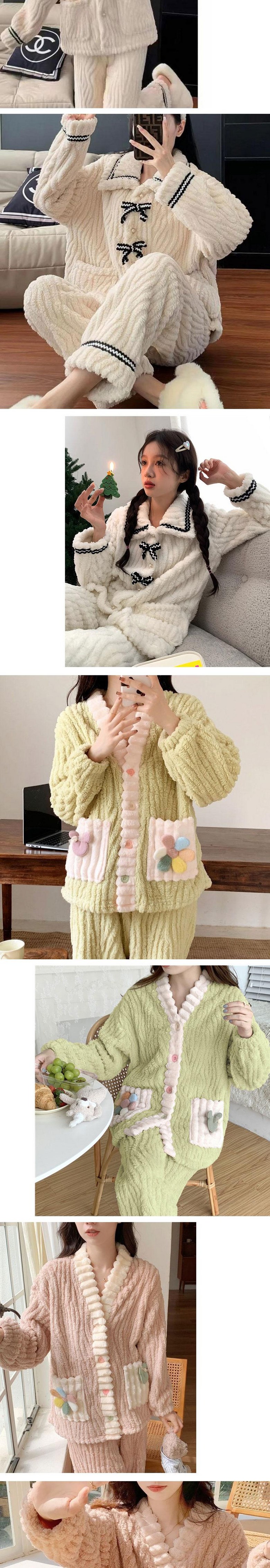 노바 꿀잠 수면잠옷 극세사 여성 단추형 잠옷세트