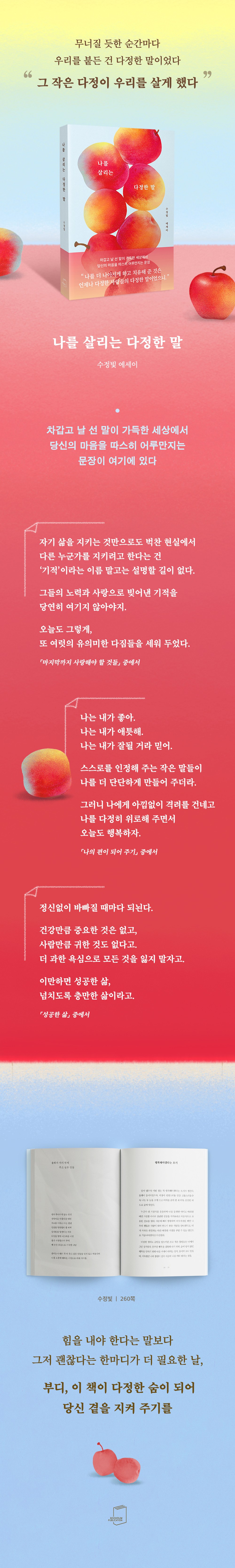 무엇보다, 이 책이 당신 곁에서 『나를 살리는 다정한 말』이 되어 주기를.