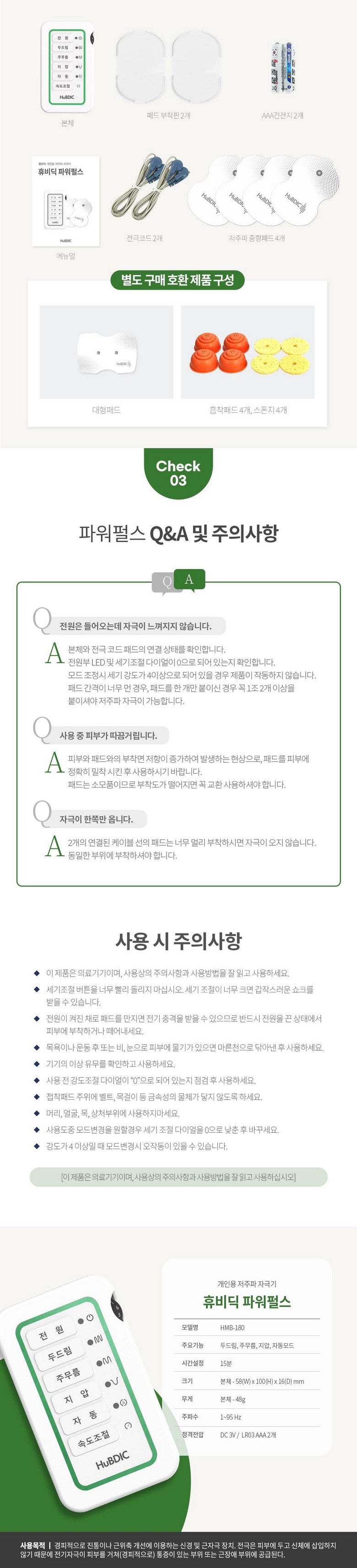 | 품명 및 모델명 | 품명 : 개인용 저주파 자극기모델명 : HMB-180 | 허가∙인증∙신고번호 (의료기기법에 따른 허가∙인증∙신고 대상 의료기기에 한함) | 제인16-4487호 |