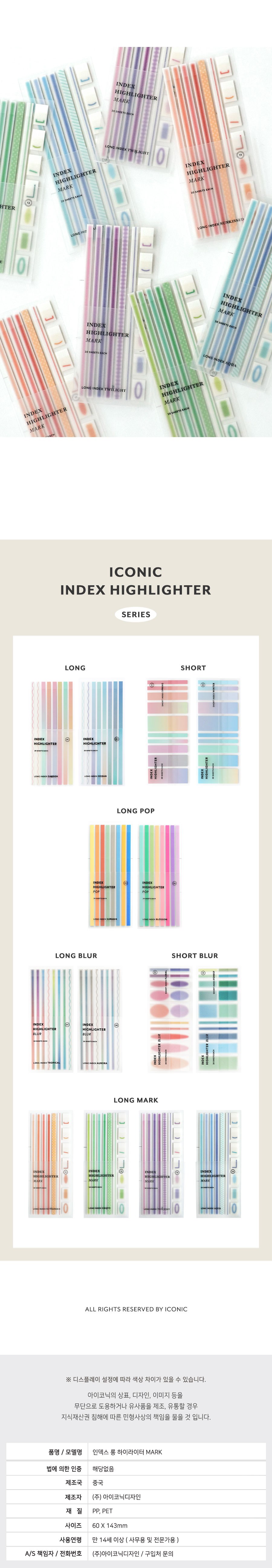 | 품명 및 모델명 | 아이코닉 인덱스 롱 하이라이터 Mark 14 Aqua 독서 플래그 밑줄 테이프 1개 60 X 143 mm 20매 | 인증/허가 사항 | 해당없음(14세이상) |