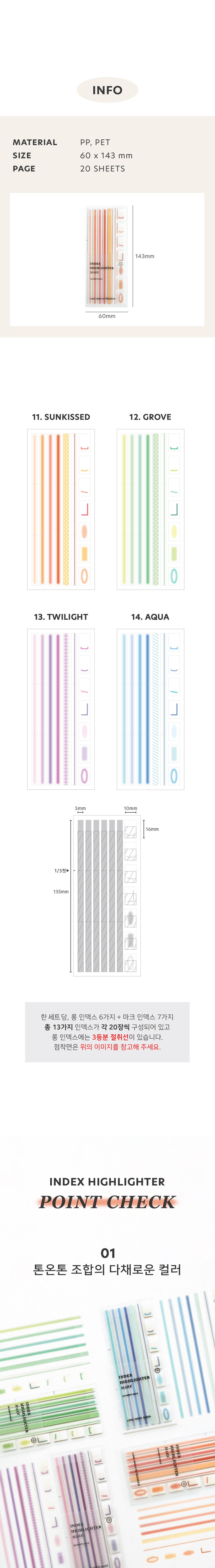 | 품명 및 모델명 | 아이코닉 인덱스 롱 하이라이터 Mark 12 Grove 독서 플래그 밑줄 테이프 1개 60 X 143 mm 20매 | 인증/허가 사항 | 해당없음(14세이상) |