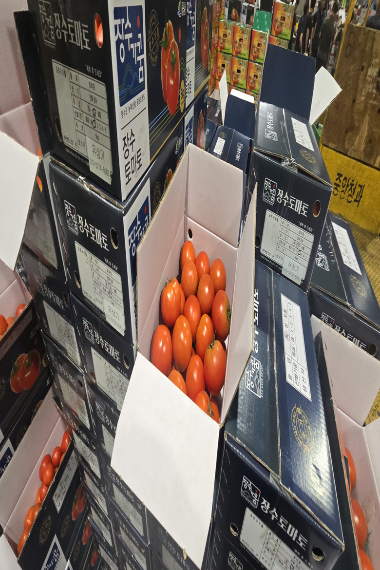| 품목 또는 명칭 | 완숙 또는 찰토마토 2.5kg 5kg | 포장단위별 내용물의 용량(중량),수량,크기 | 못난이 토마토 소과 중과 대과 혼합과 2.5kg 5kg |
