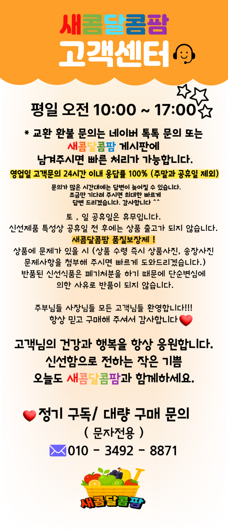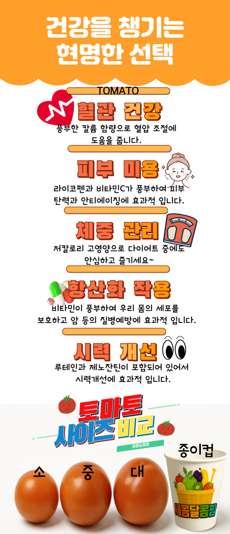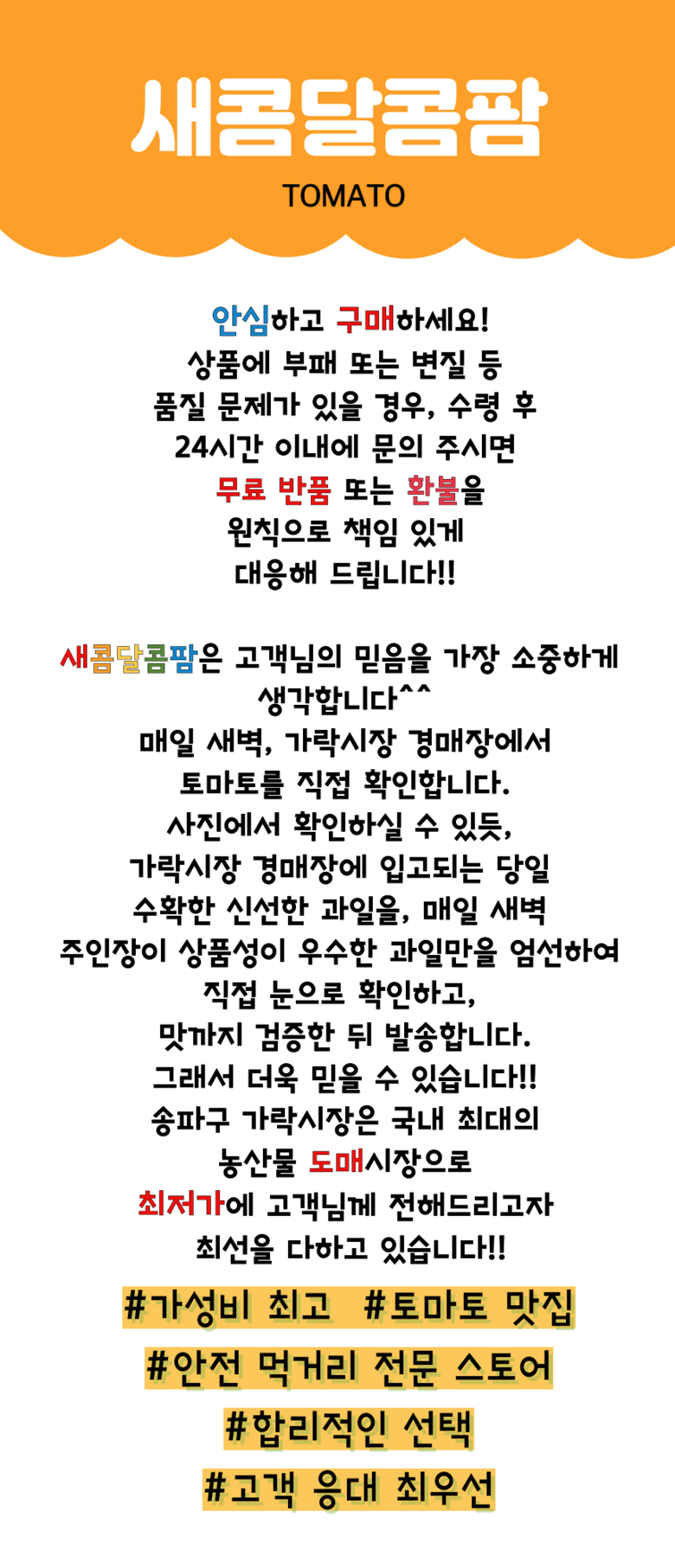 | 생산자(수입자) | 생산자: 새콤달콤팜 협력사 | 원산지 | 국산 |