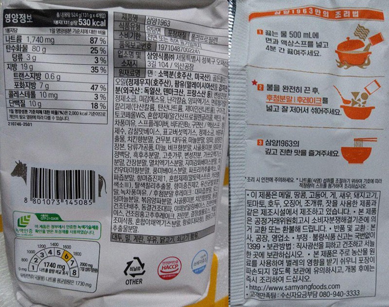 | 포장단위별 내용물의 용량(중량), 수량 | 131g x 4개 | 원재료명 및 함량 | 컨텐츠 참조 |