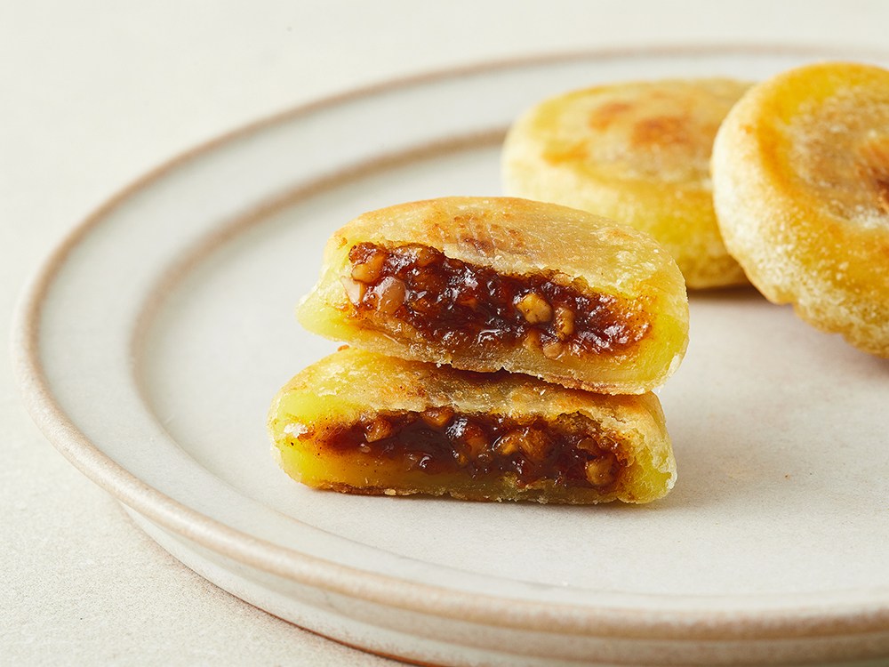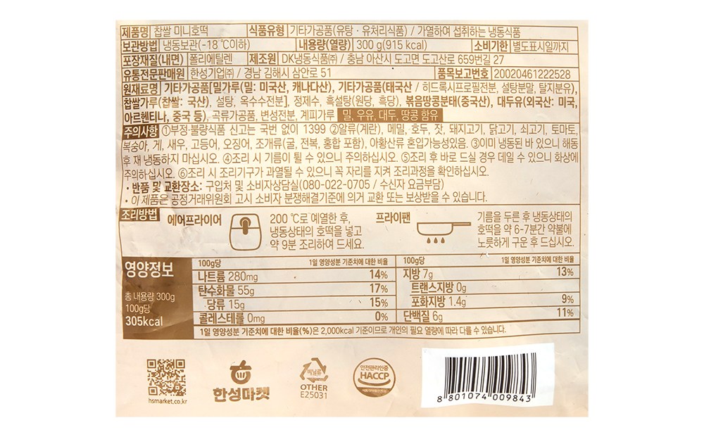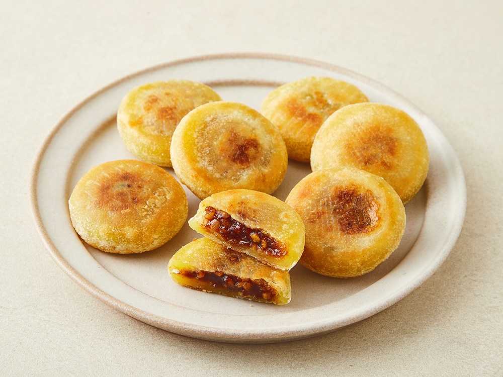 하나씩 집어 먹기 좋은 미니 찹쌀 호떡이에요. 찹쌀가루로 반죽한 뒤 노릇하게 구워, 겉은 바삭하고 속은 쫀득한 식감을 살렸답니다. 흑설탕과 계피가루가 들어가 달콤하면서도 향긋한 풍미가 일품이고요. 볶음땅콩 분태를 넣어 오도독 씹는 재미까지 더해줬답니다. 에어프라이어로 간단하게 데우기만 해서 추억의 맛을 즐겨보세요.