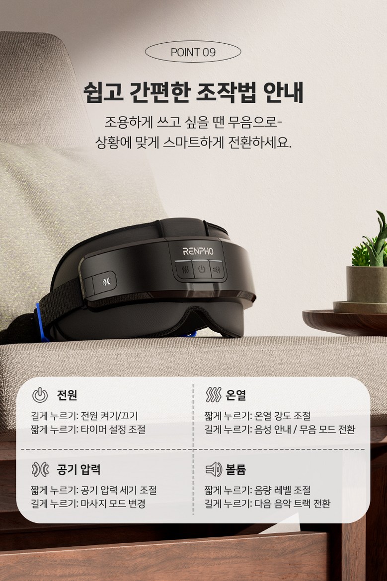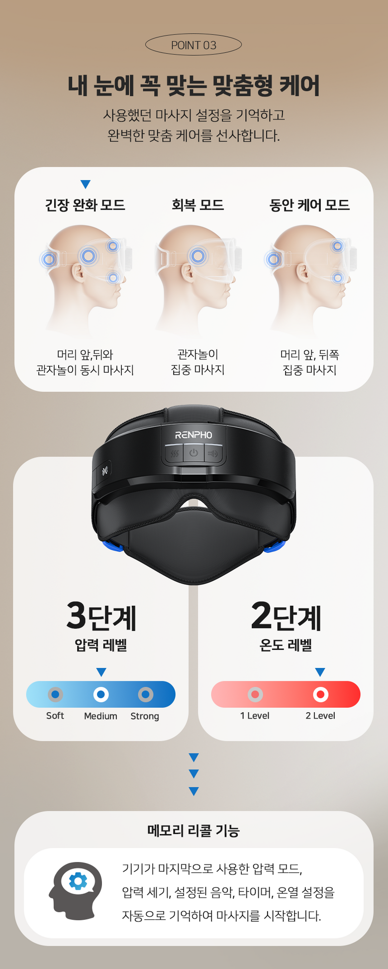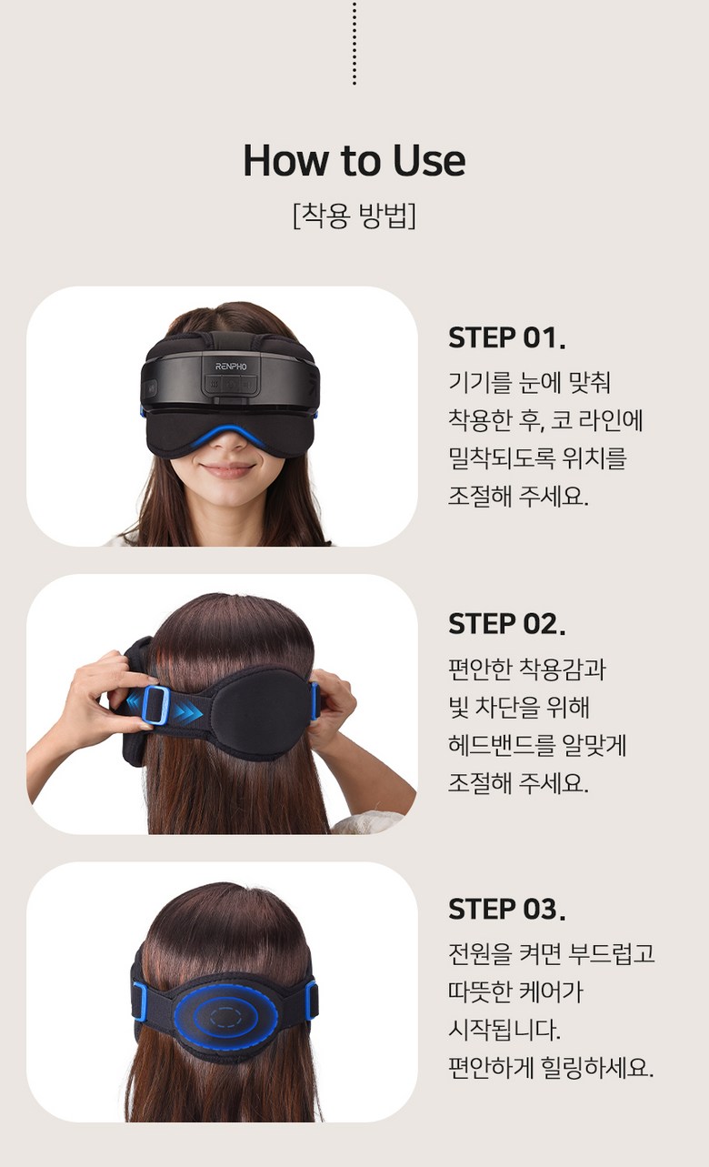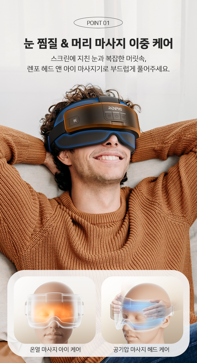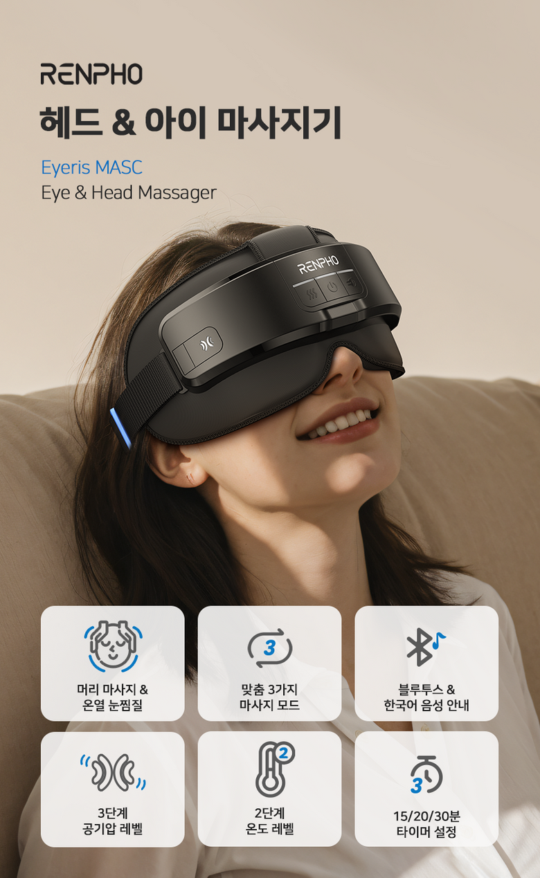 RENPHO 렌포 아이리스 마스크 헤드 앤 아이 마사지기 관자놀이 온열 눈찜질기