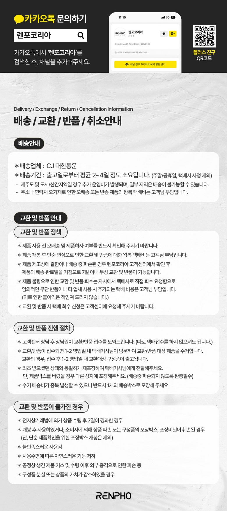 e-mail | korea@renpho.com | 연락처 | 010-9183-5584 |