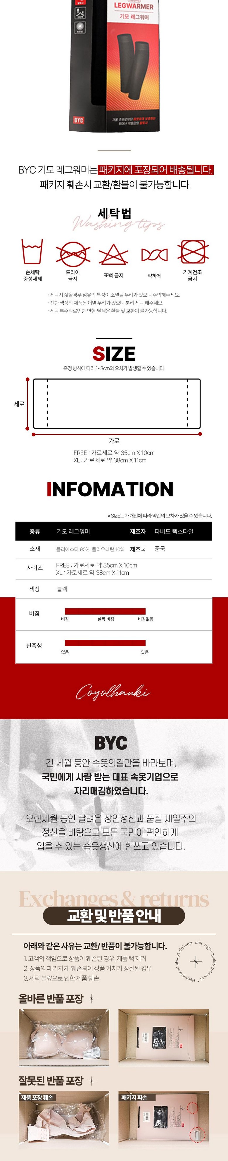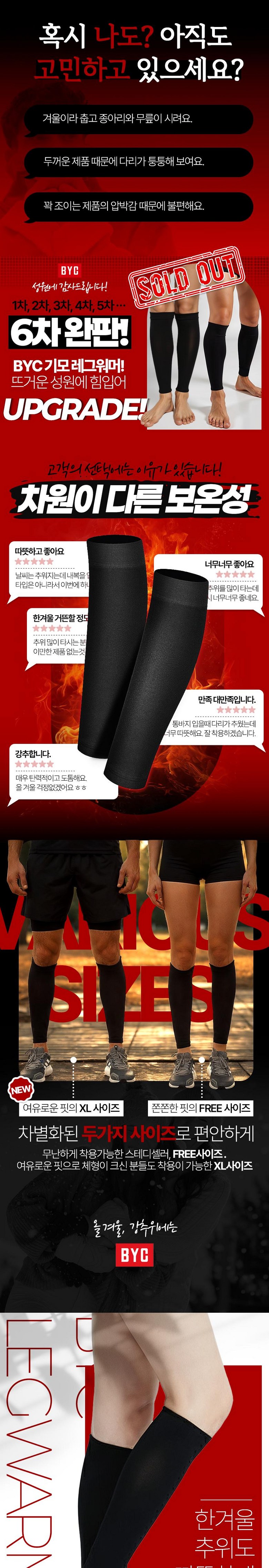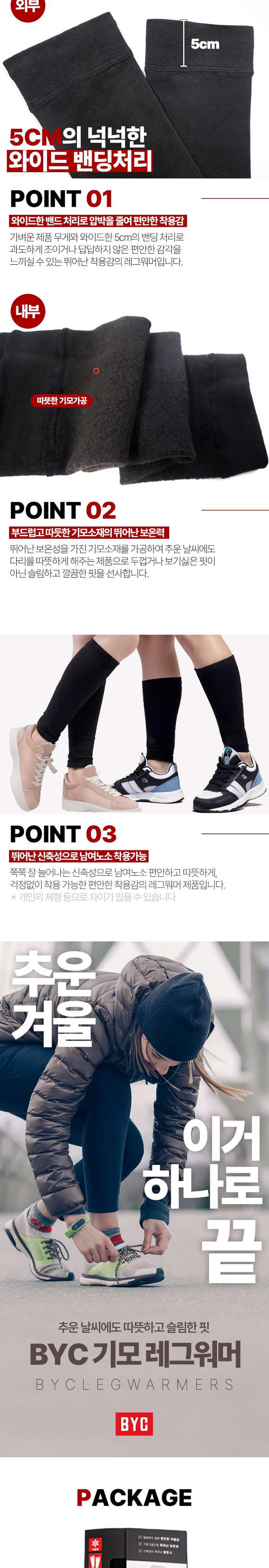 | 종류 | BYC 남성 여성 겨울 기모 레그워머 2켤레 세트 | 소재 | 폴리에스터90%, 폴리우레탄10% |