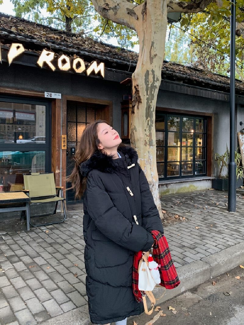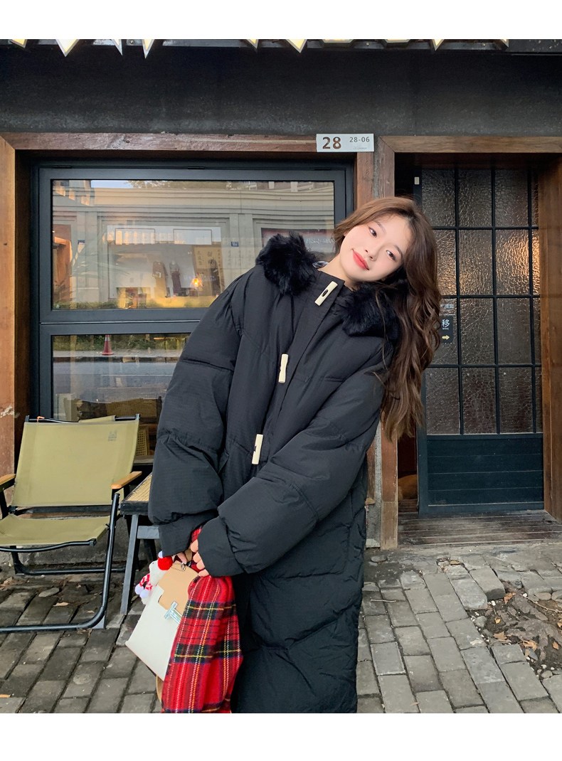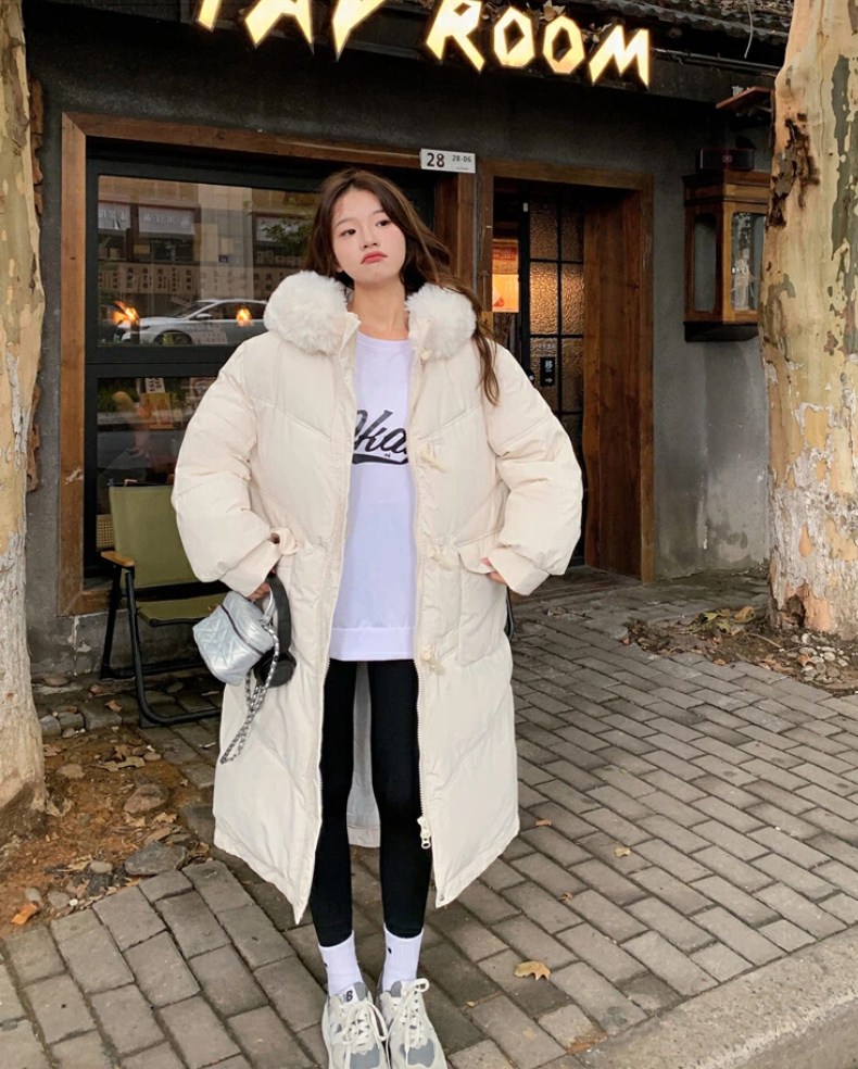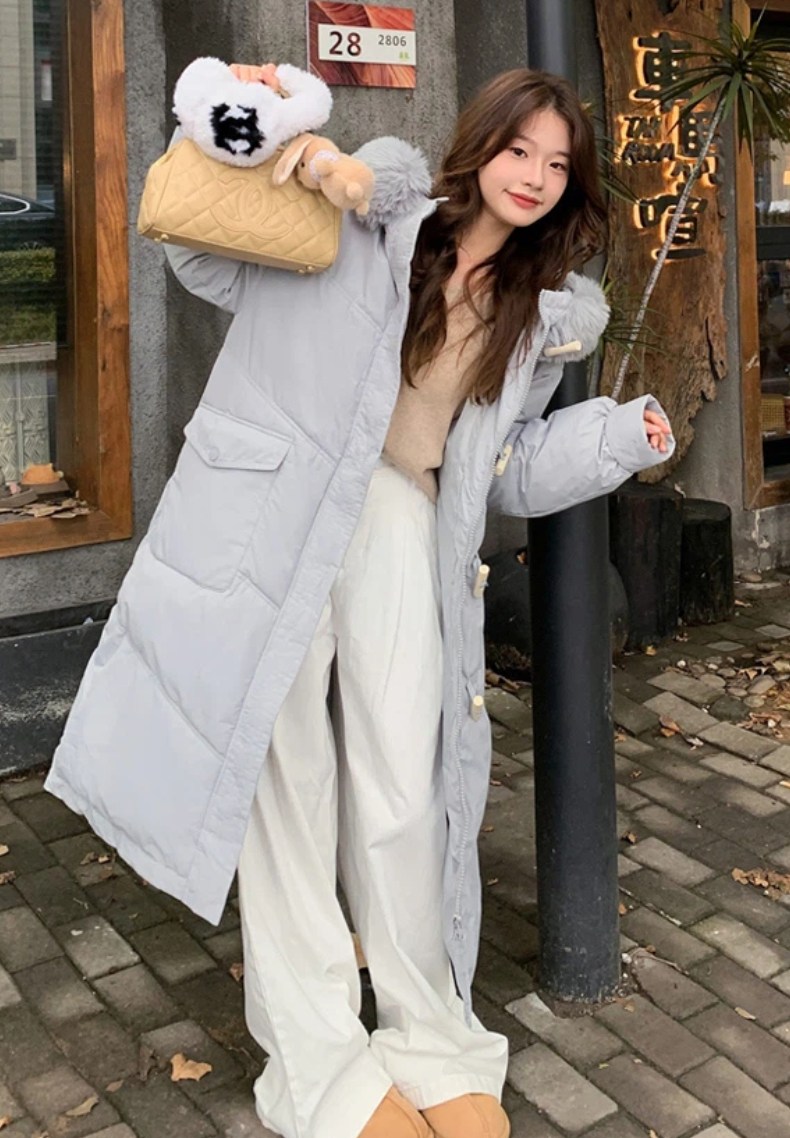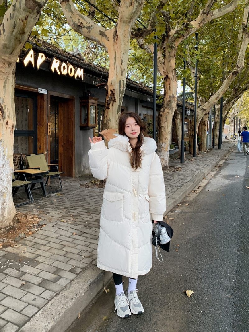 투니스 여성 심플 퍼 후드 긴소매 롱 코튼 패딩