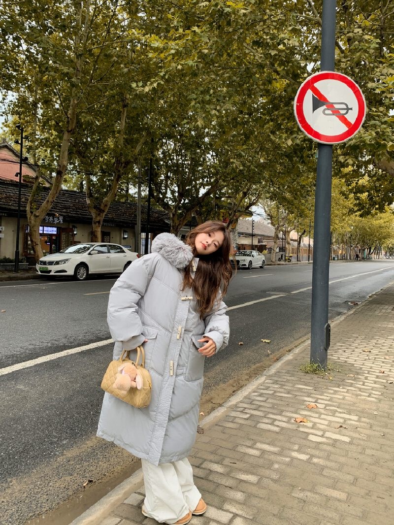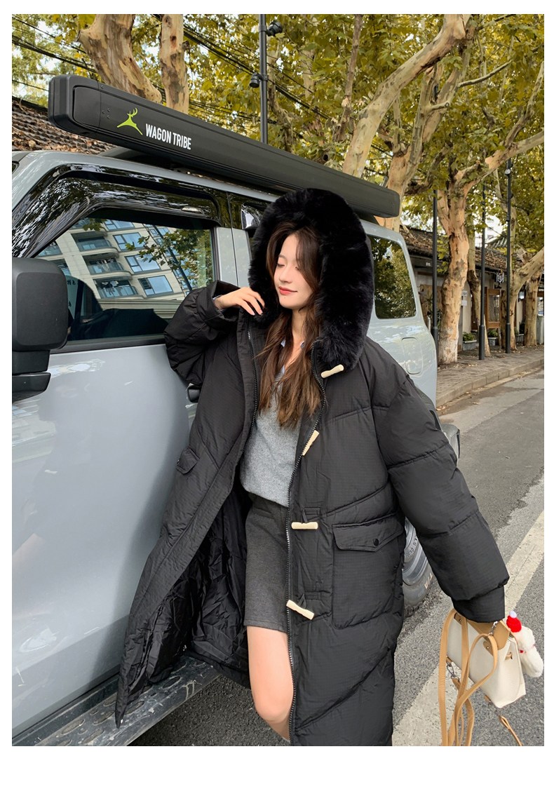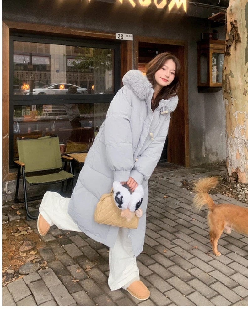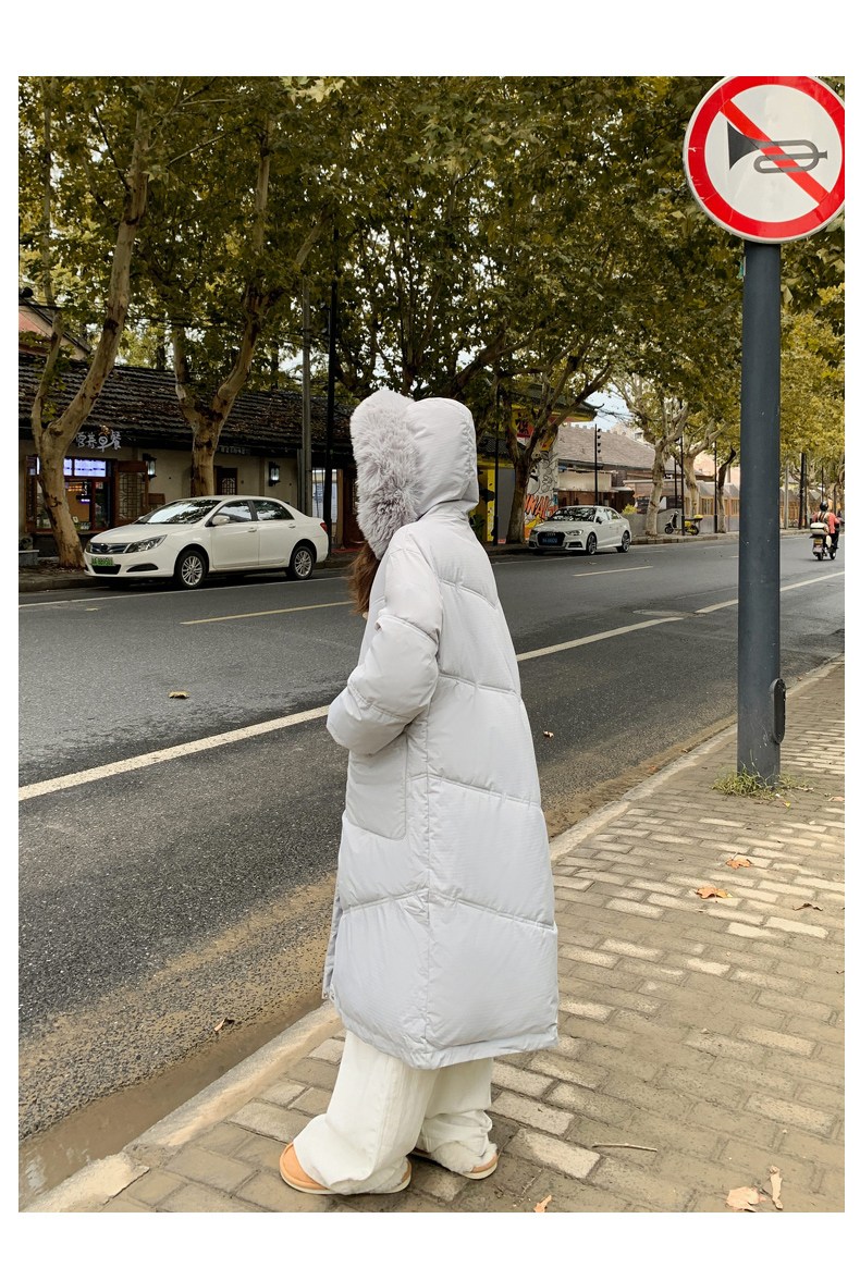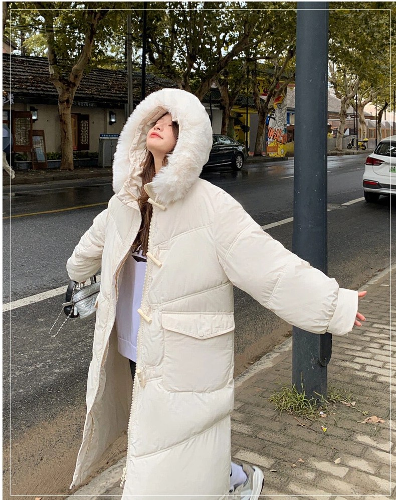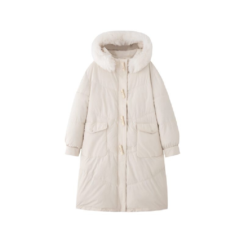 투니스 여성 심플 퍼 후드 긴소매 롱 코튼 패딩