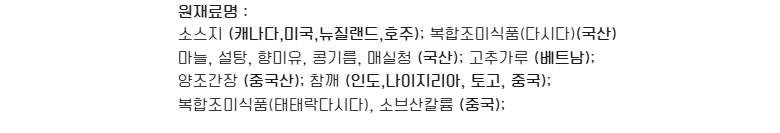 | 제조연월일, 소비기한 또는 품질유지기한 | 상품 상세페이지 참조 | 세부 품목군별 표시사항 | 상품 상세페이지 참조 |