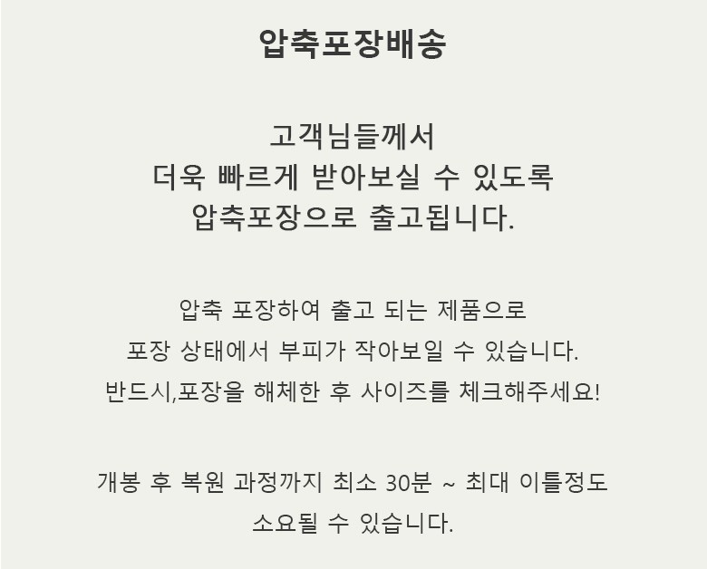 - ㆍ모니터 해상도의 차이로 인해 색상이나 이미지가 실제와 달라, 고객이 단순 변심으로 교환/반품을 무료로 요청하는 경우