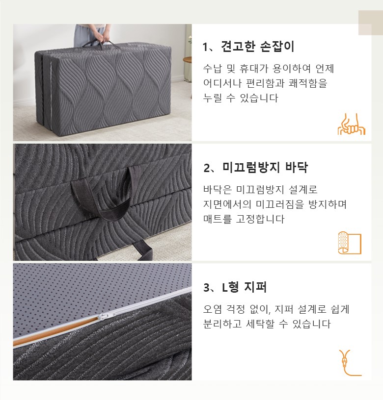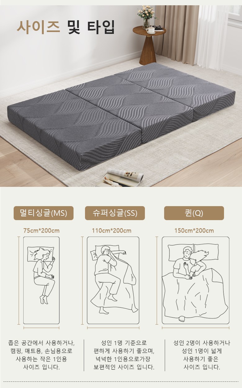| 품명 | 3겹 접이식 매트리스 | KC 인증정보 | 상품 상세페이지 참조 |
