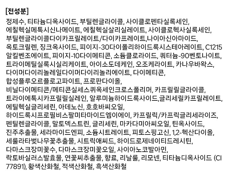| 화장품제조업자, 화장품책임판매업자 및 맞춤형화장품판매업자 | 컨텐츠 참조 | 제조국 | 대한민국 |