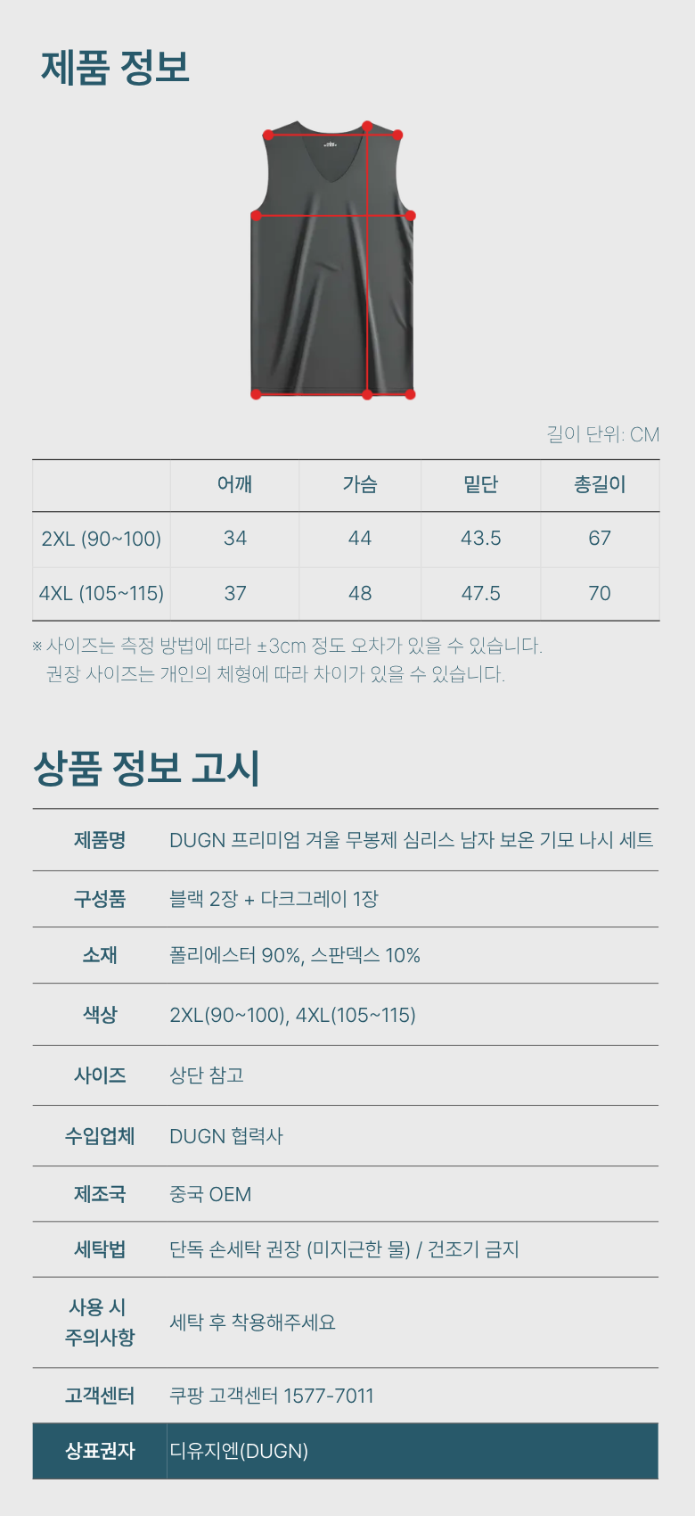 | 소비자상담 및 교환반품 문의 | 쿠팡고객센터 1577-7011 배송 및 환불/교환에 대한 문의는 마이쿠팡-고객센터 내 상담하기를 이용해주세요. | ||
