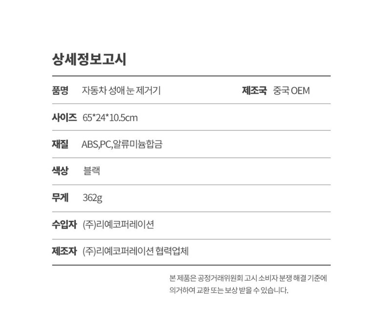 | KC 인증정보(자동차관리법에 따른 자기인증 대상 자동차부품에 한함) | 상품 상세페이지 참조 | 제조자(수입자) | 상품 상세페이지 참조 |