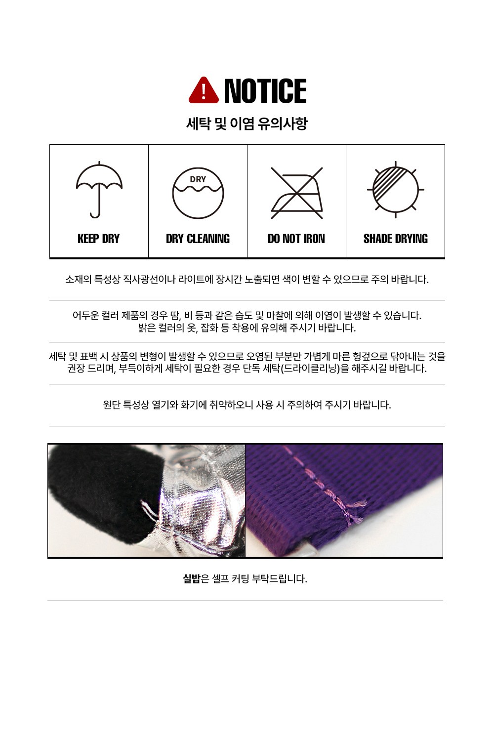 - ㆍ모니터 해상도의 차이로 인해 색상이나 이미지가 실제와 달라, 고객이 단순 변심으로 교환/반품을 무료로 요청하는 경우