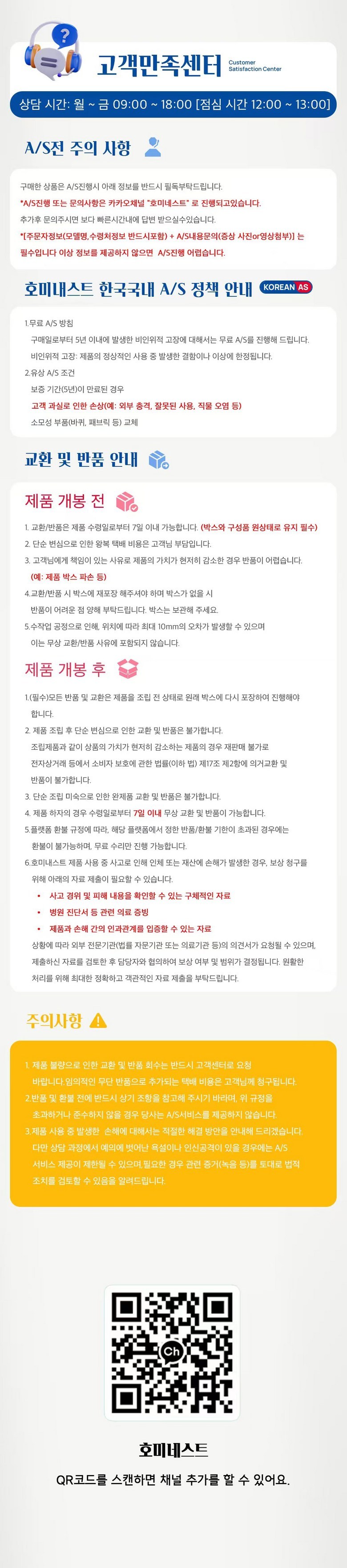 - ㆍ교환/반품에 관한 일반적인 사항은 판매자가 제시사항보다 관계법령이 우선합니다.