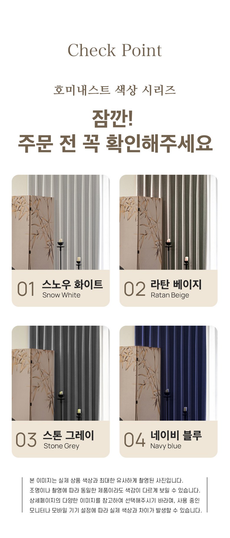 | 제품 소재 | 폴리에스터 100% | 색상 | 스노우 화이트,스톤 그레이,라탄 베이지,네이비 블루 |