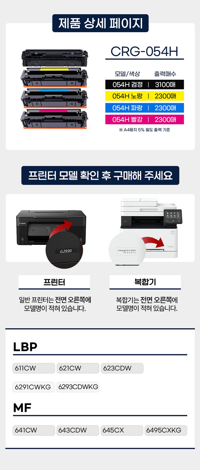 계좌이체- 호환기종: LBP 611CW, LBP 621Cw, LBP 623CDW, LBP 6291CWKG, LBP 6293CdwKG, MF 641CW, MF 643CDW, MF 645CX, MF 6495CXKG