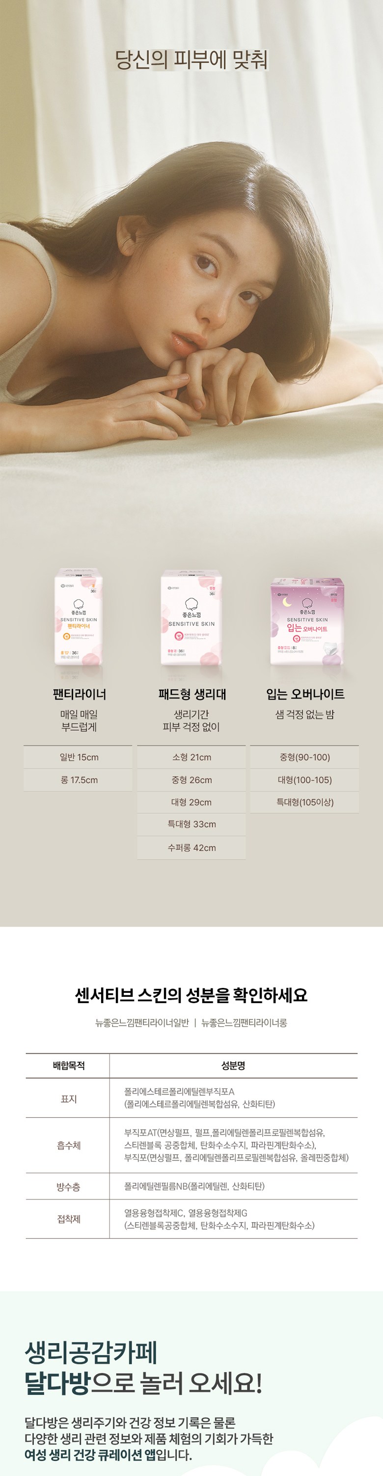 | 품명 및 모델명 | 뉴좋은느낌팬티라이너롱 | 인증/허가 사항 | 의약외품 |