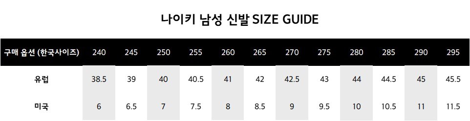 | 치수 | 상품상세참조 | 제조자(수입자) | Nike Commercial (China) Co., Ltd |