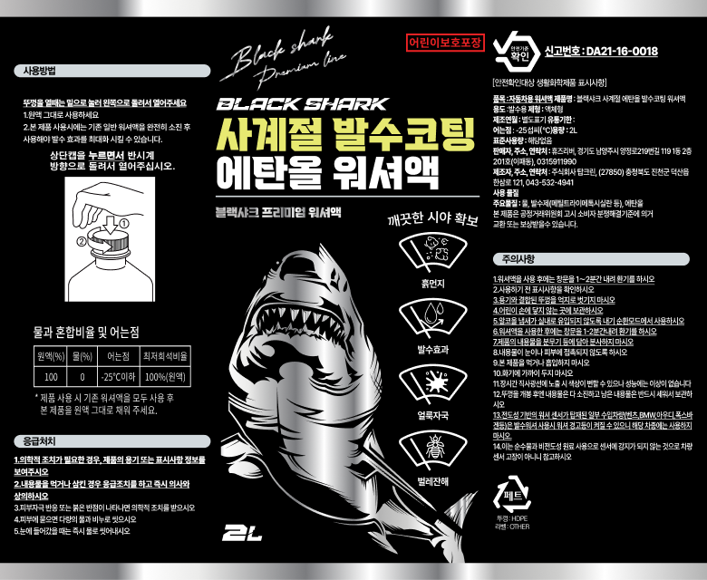 - 워셔액 주성분: 에탄올