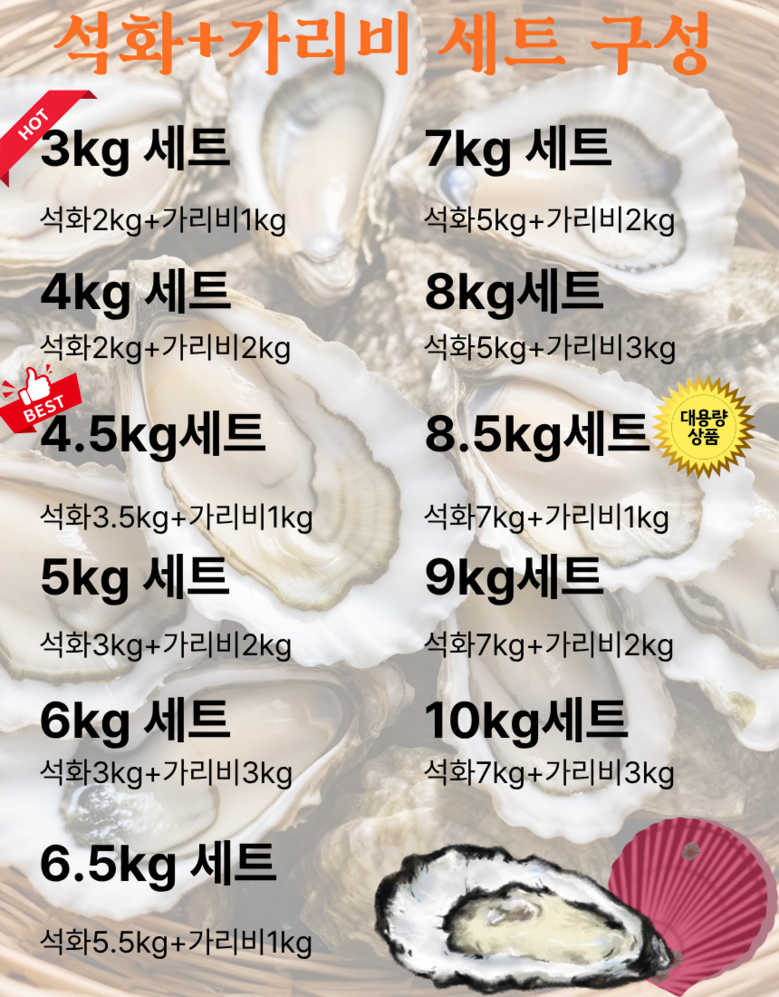 4.5kg:3.5kg+가리비1kg/5kg:석화3kg+가리비2kg