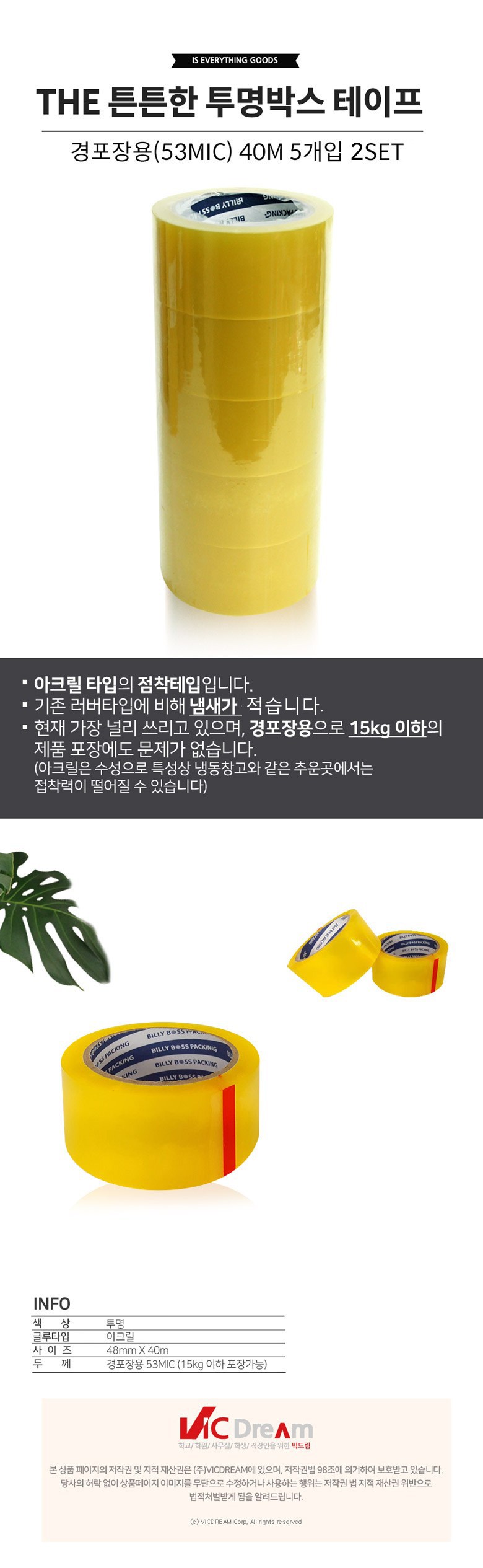 | 품명 및 모델명 | THE튼튼한 투명박스테이프 경포장용 | 인증/허가 사항 | 해당없음 |