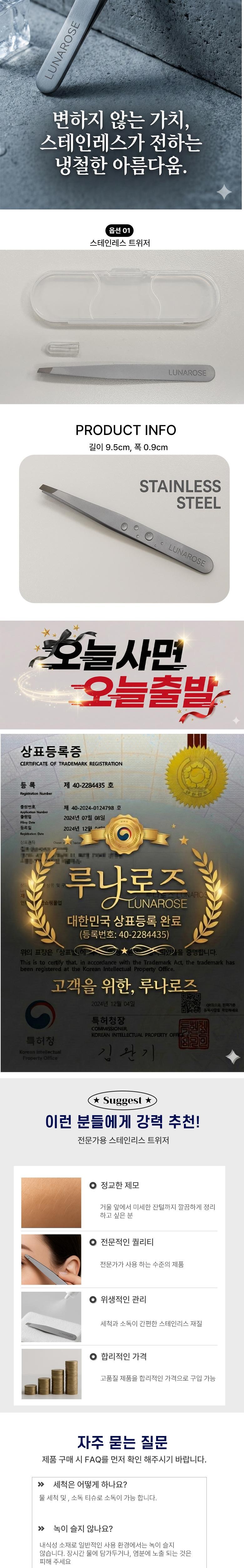 | 품명 및 모델명 | 루나로즈 짧은 모 전용 족집게 | 인증/허가 사항 | 상품 상세 페이지 참고 |
