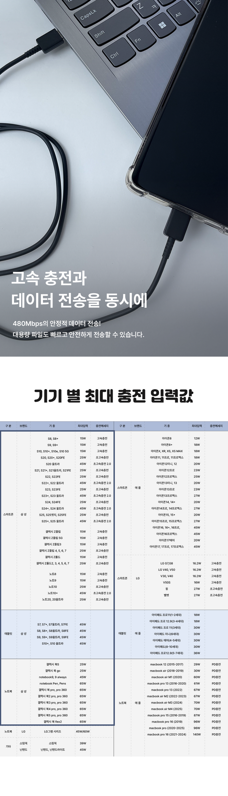 | 품명 및 모델명 | 삼성 호환 C to C 케이블 | 인증/허가 사항 | 해당없음 |
