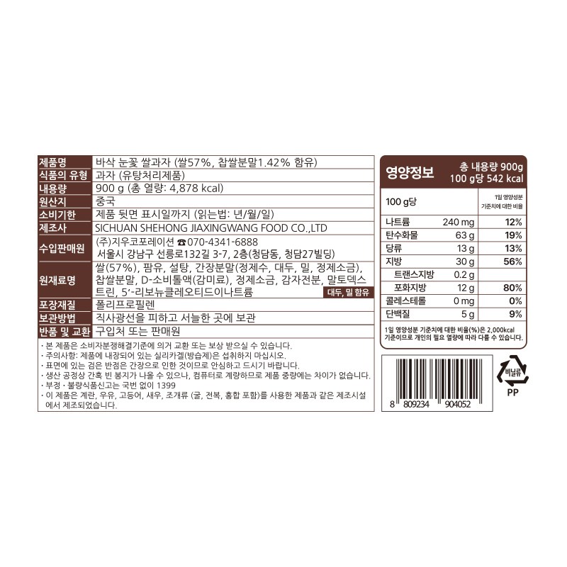 | 제품명 | 바삭 눈꽃 쌀과자 | 식품의 유형 | 컨텐츠 참조 |