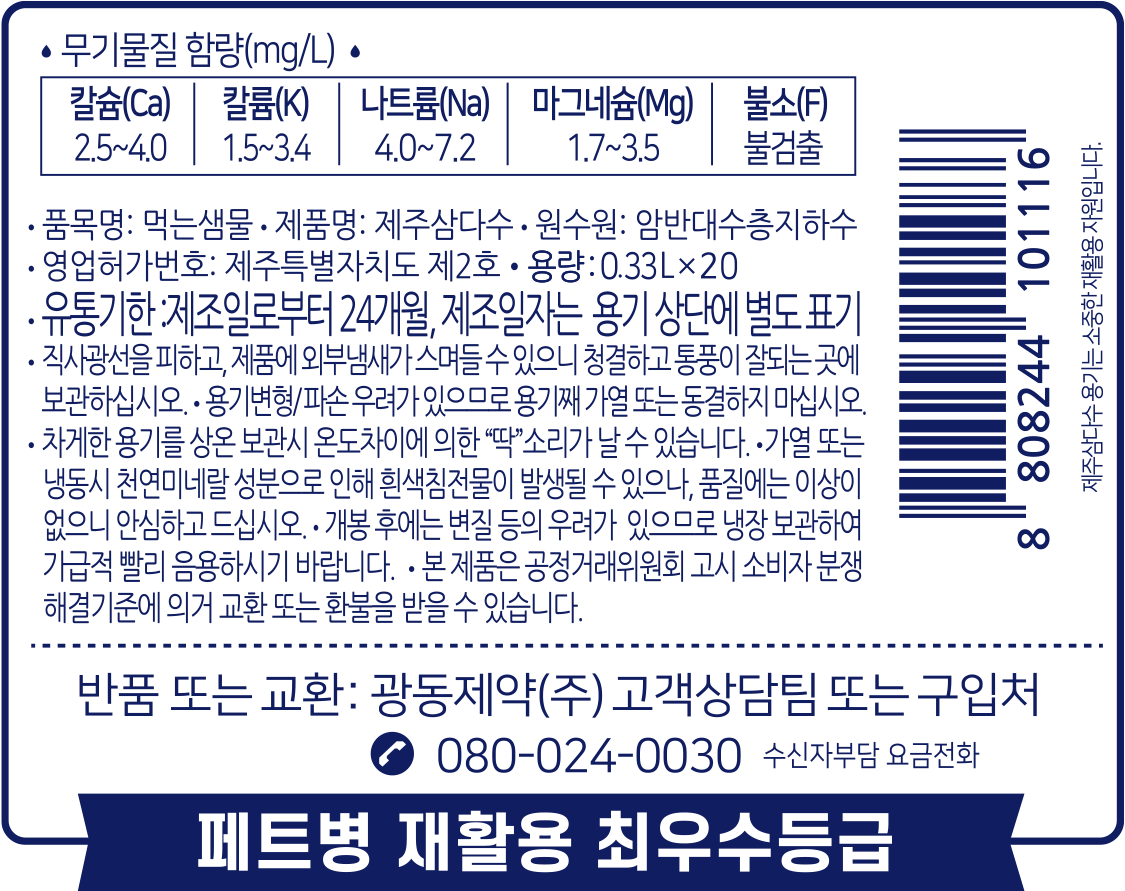 | 포장단위별 내용물의 용량(중량), 수량 | 330ml, 40개 | 원재료명 및 함량 | 컨텐츠 참조 |