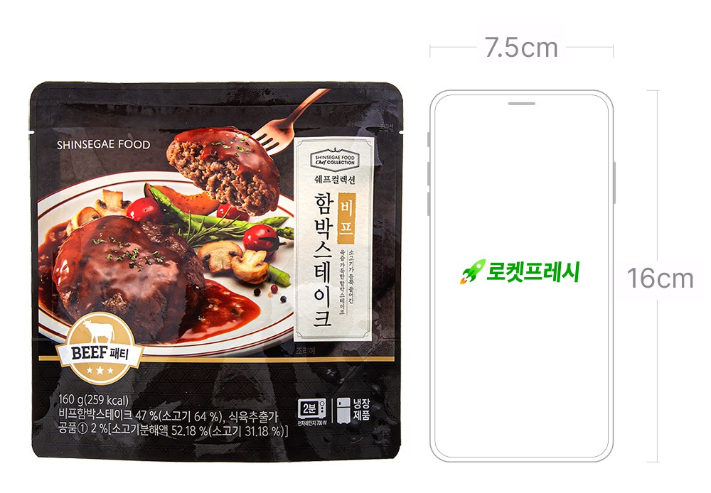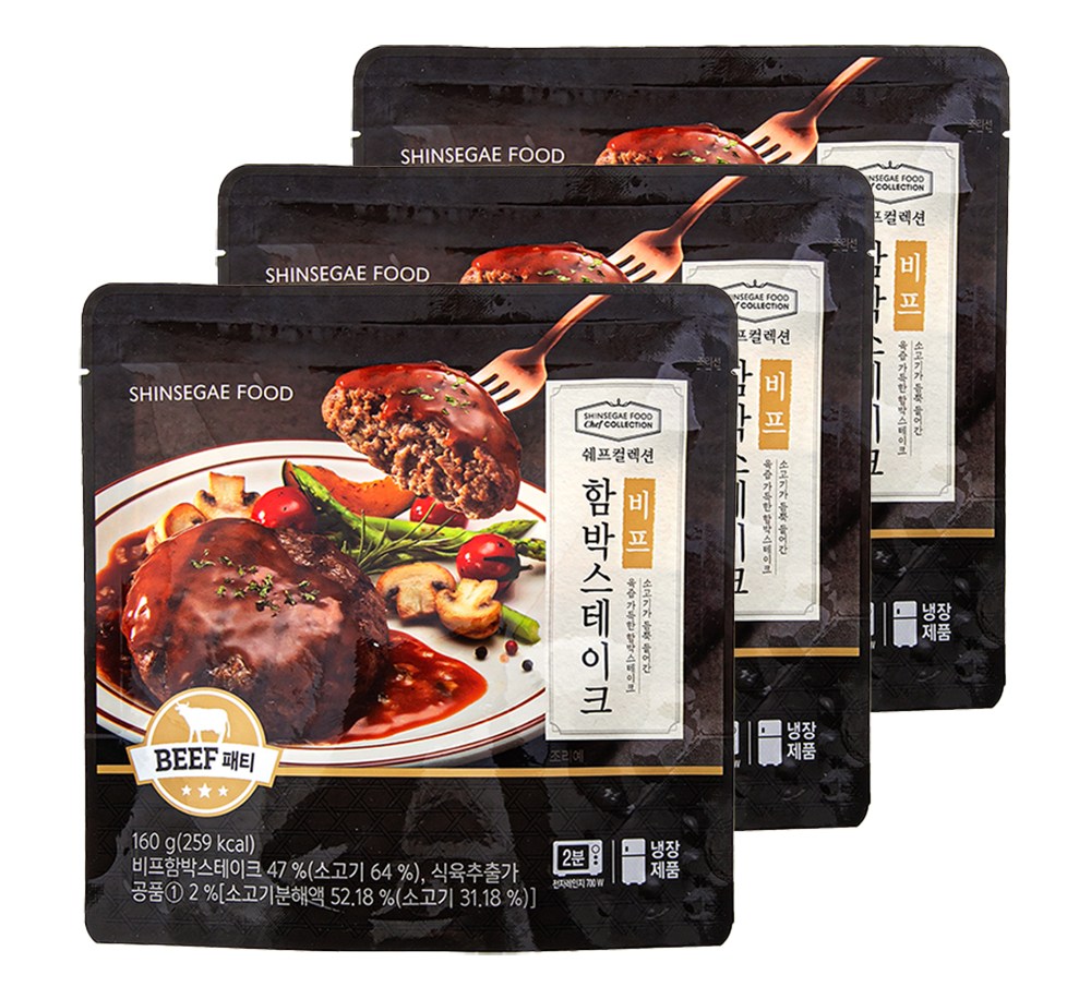 호텔 출신 신세계푸드 연구원들의 노하우로 맛과 정성을 전하는 브랜드. 쉐프컬렉션의 비프 함박 스테이크를 소개할게요. 소고기로 만든 함박스테이크가 한입 베어 물면, 육즙이 팡 터지며 깊고 고소한 풍미를 선사하는데요. 여기에 토마토페이스트로 새콤달콤하게 맛을 낸 소스를 듬뿍 얹어, 고기의 감칠맛을 한층 끌어올렸답니다. 한 번에 먹기 좋은 양으로 개별 포장되어 있어 온 가족이 넉넉하게 즐기기 좋고요. 전자레인지로 간편하게 조리하면, 집에서도 근사한 메인 요리를 손쉽게 완성할 수 있어요.