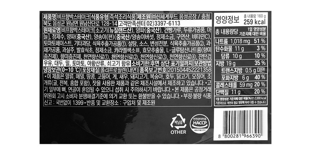 | 포장단위별 내용물의 용량(중량), 수량 | 160g*3개 | 원재료명 및 함량 | 컨텐츠 참조 |