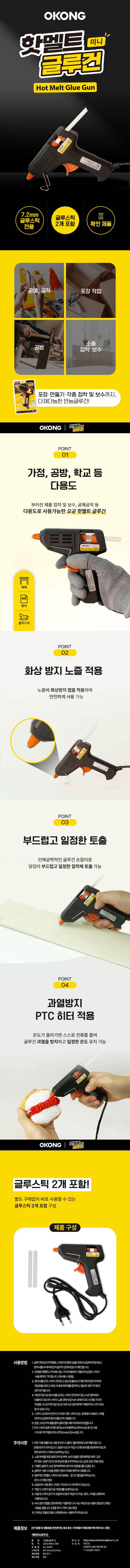 | 제조자(수입자) | 글루건: Ningbo Kingvos Electrical Appliance Co.,Ltd. / (주)오공 | 글루스틱: 컨텐츠참조 | 제조국 | 글루건 : 중국 ㅣ 글루스틱: 컨텐츠참조 |