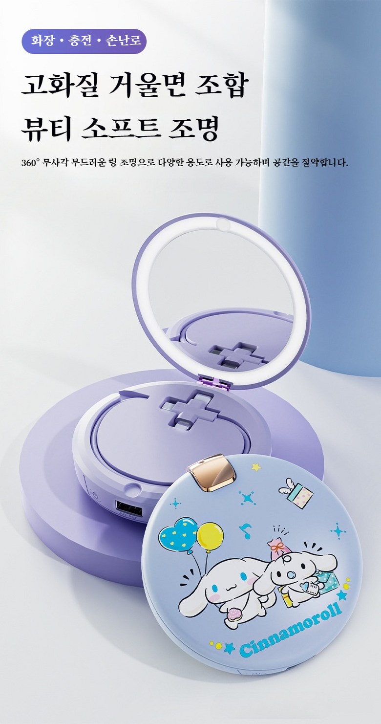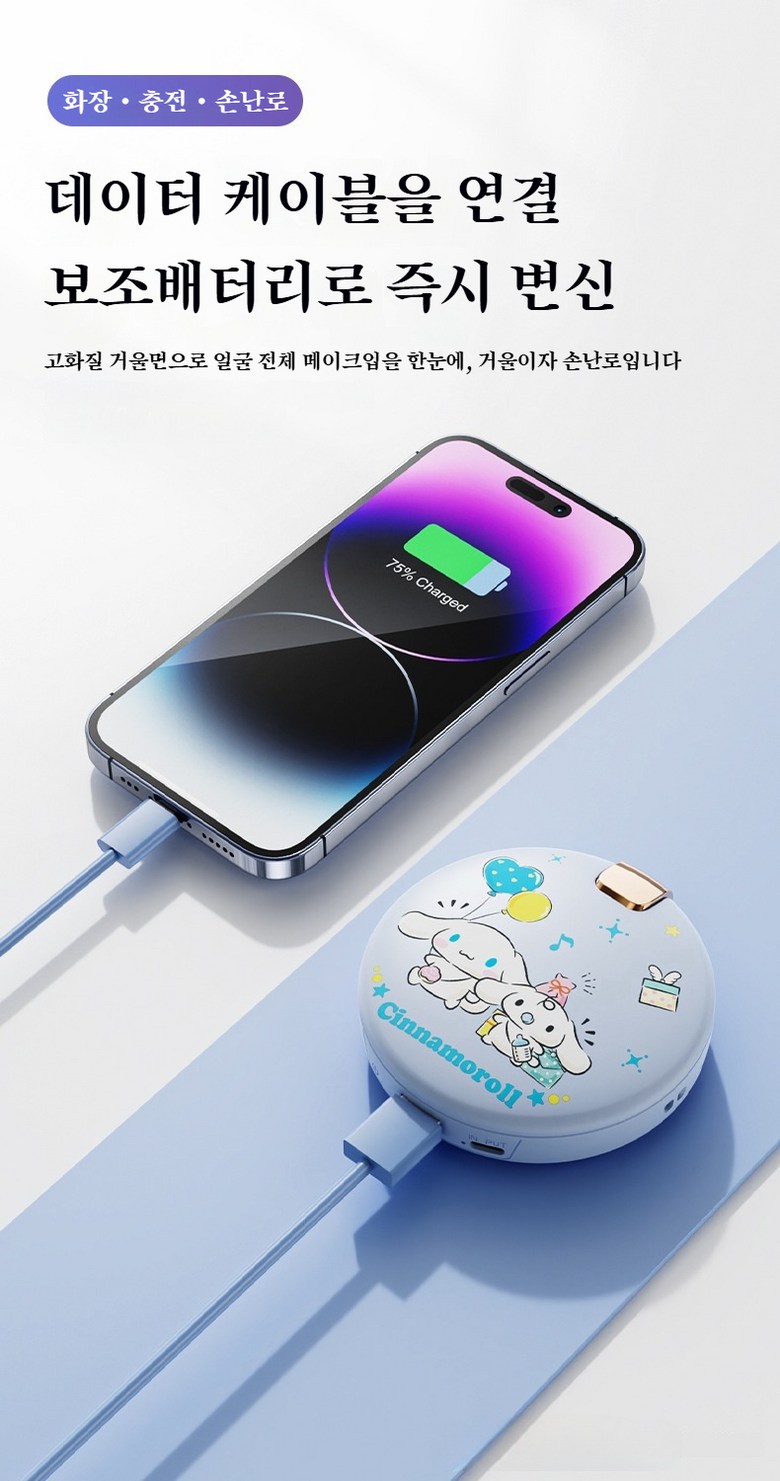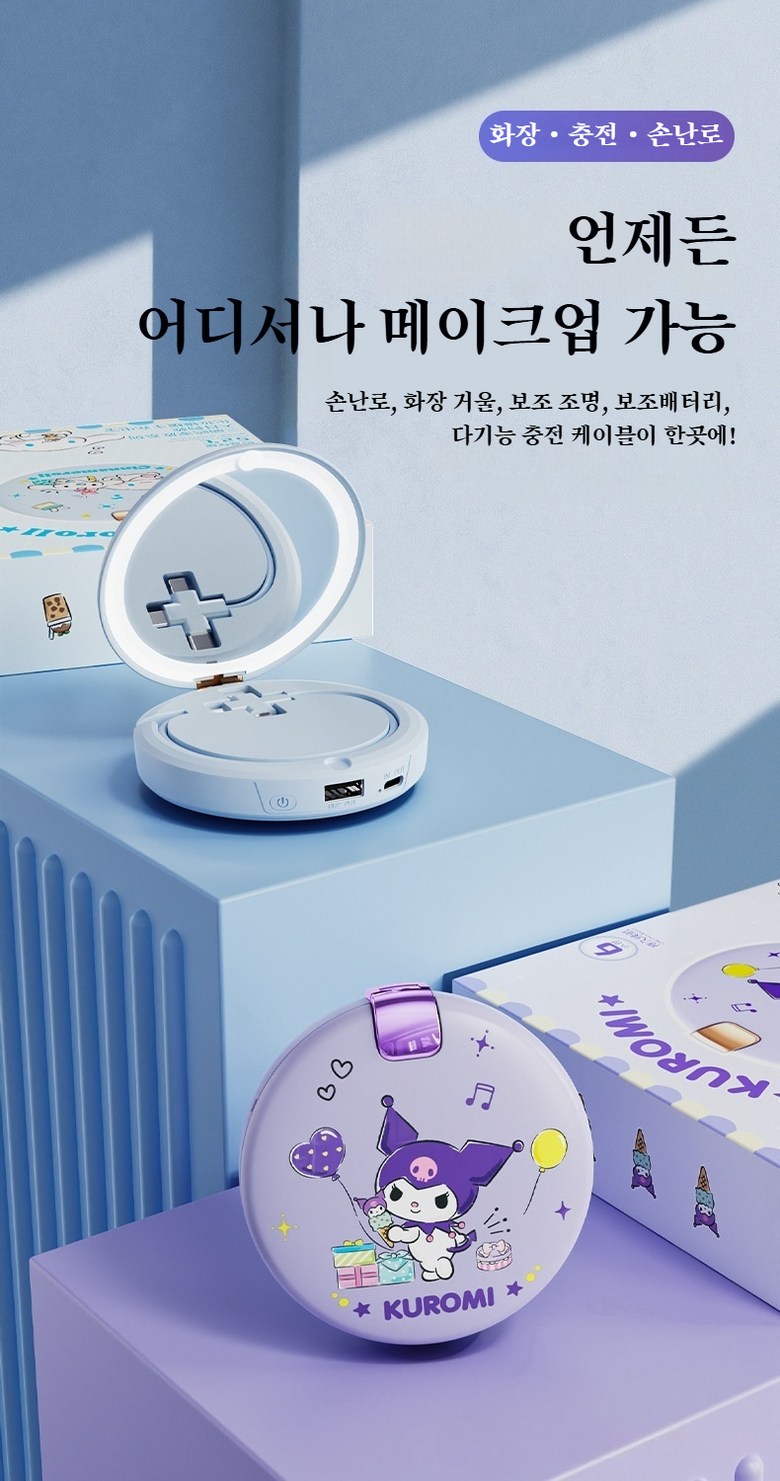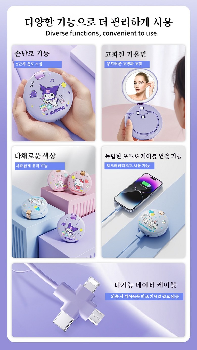 산리오 보조배터리 겨울용 3in1 충전식 손난로 미러 휴대용