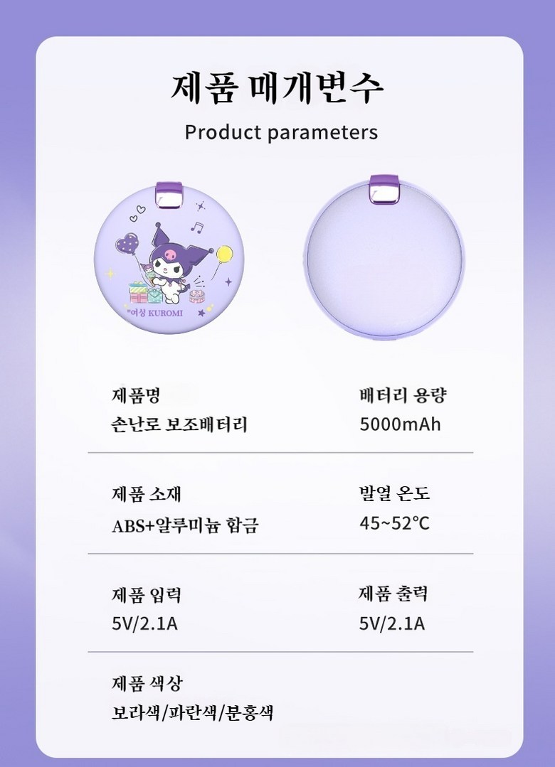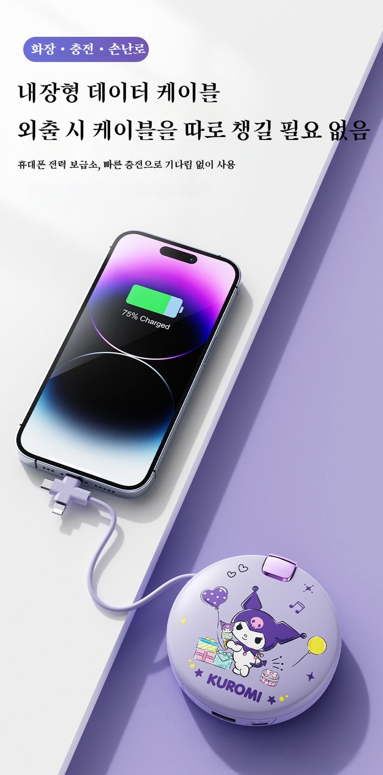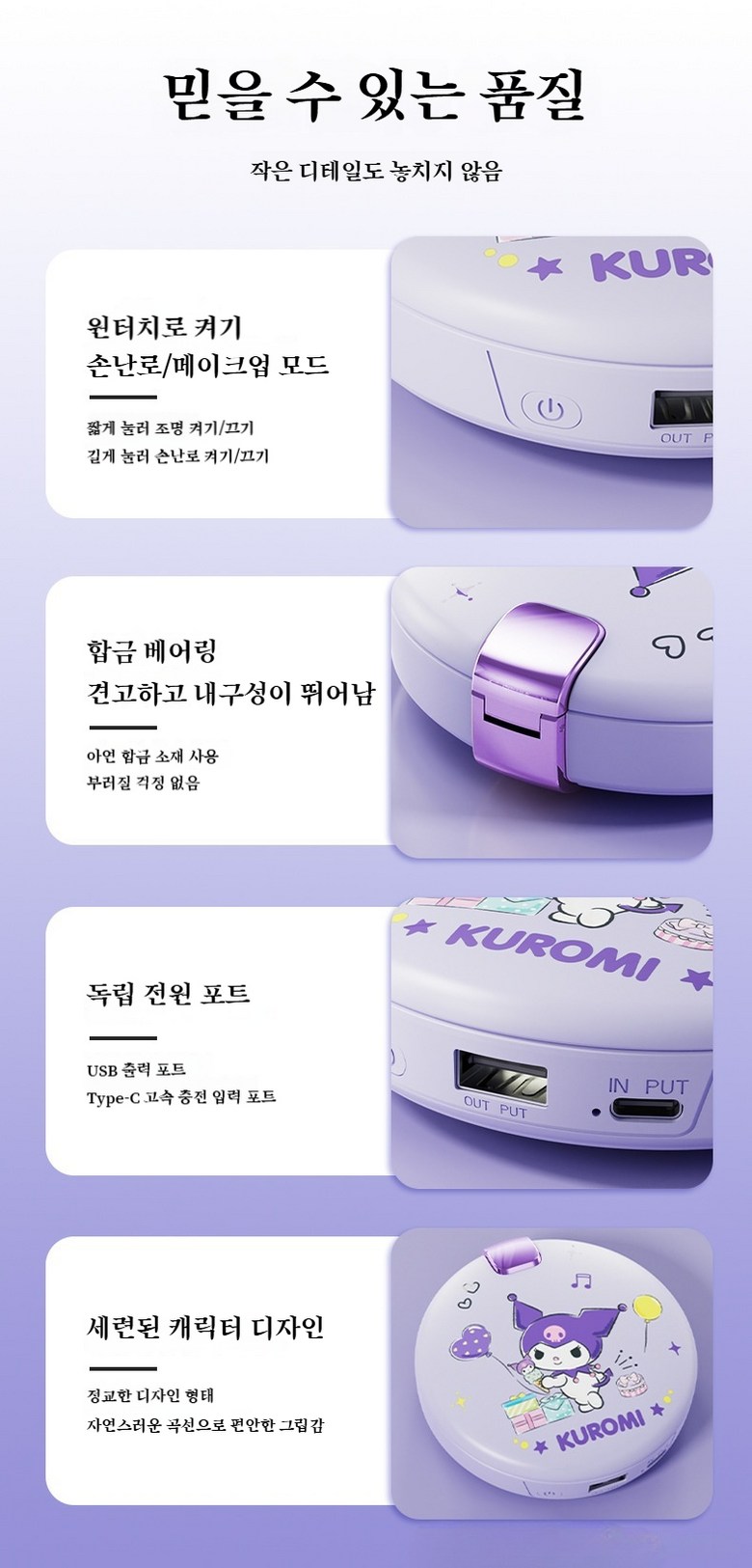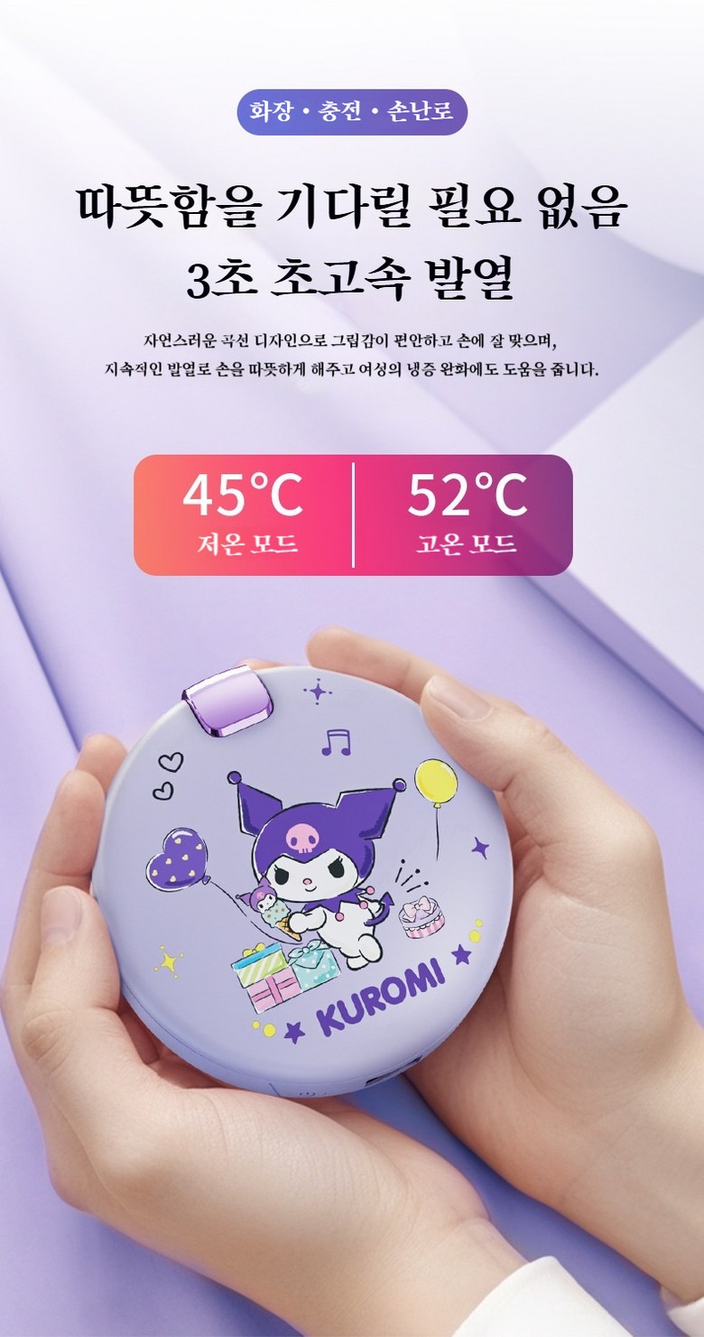 산리오 보조배터리 겨울용 3in1 충전식 손난로 미러 휴대용