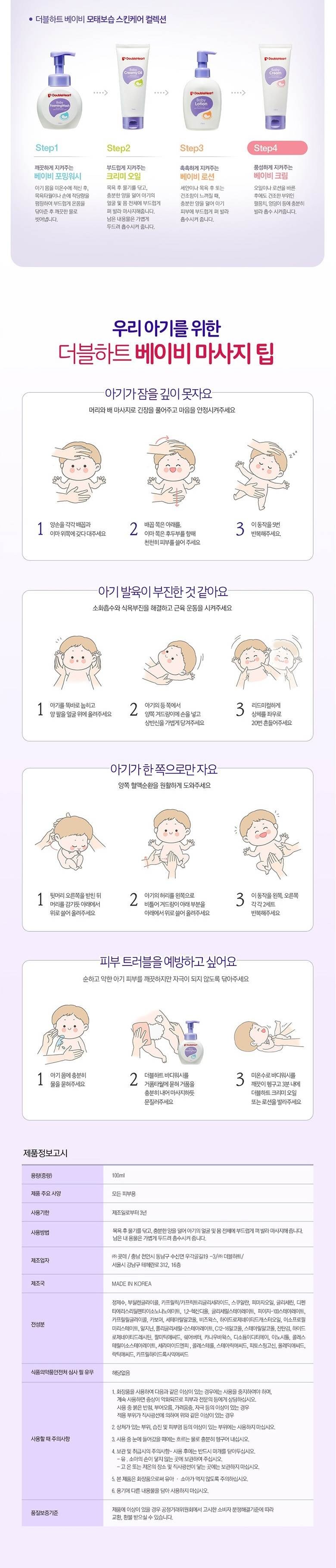 | 사용기한 또는 개봉 후 사용기간 | 제조일부터 3년. 공급사 사정에 따라 제조일자가 다른 상품이 입고되어 정확한 제조년월일 및 사용기한 확인이 어렵습니다. 제조년월일 확인이 어려운 상품은 유통기한을 기준으로 배송되므로 구매 시 유통기한을 참고 부탁드립니다. | 사용방법 | 세안이나 목욕 후 물기를 닦고, 적당량을 덜어 아기피부에 세심하게 펴 발라 흡수시켜줍니다. |