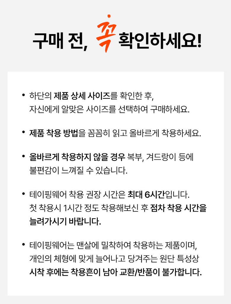 | 제품 소재 | 겉감 : 나일론 60%, 폴리우레탄 40%안감 : 나일론 60%, 폴리우레탄 40%안감 이면(테이핑) : 나일론, 실리콘(지정외) | 색상 | 블랙, 스킨 |