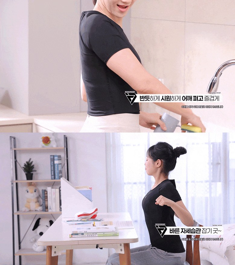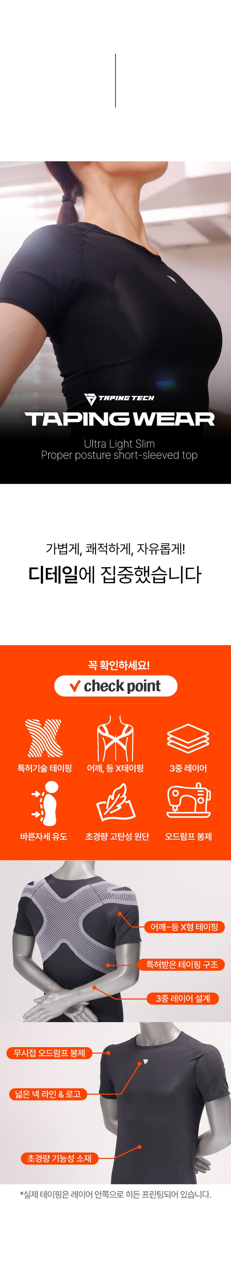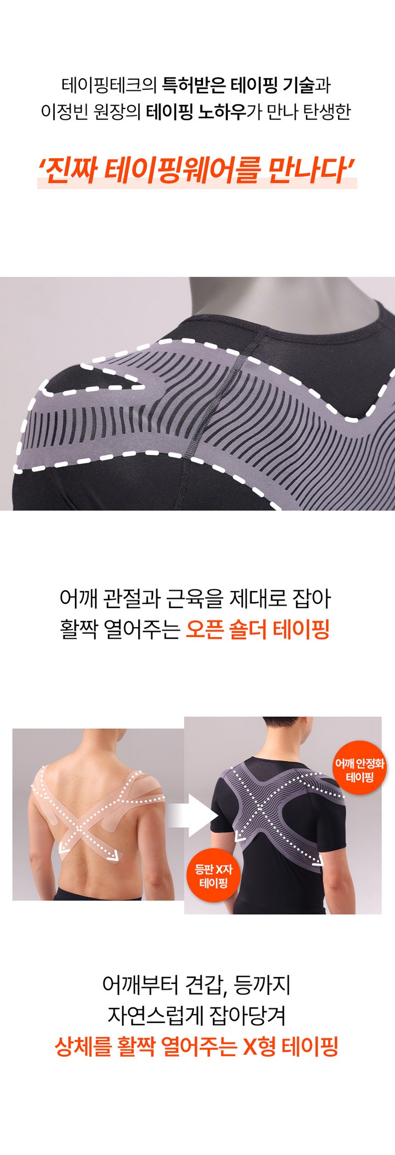 테이핑테크 바른자세 테이핑웨어 여성용 어깨 허리 밴드 라운드숄더 굽은등 완화 자세교정 보조 헬스 이너웨어